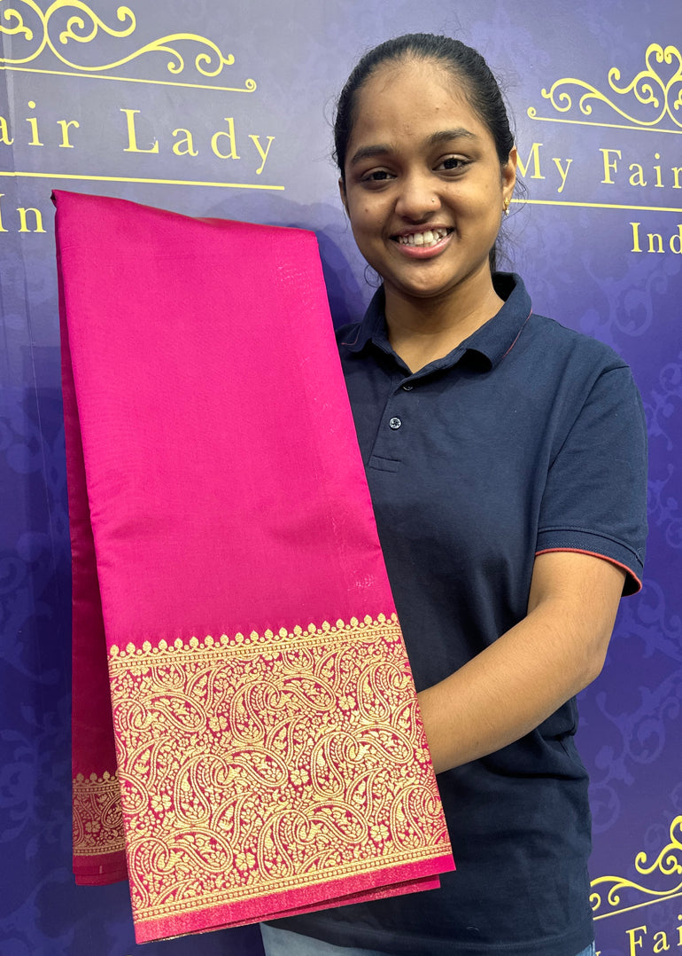 Semi-Silk Saree Rani Pink Colour - [Code 1059]