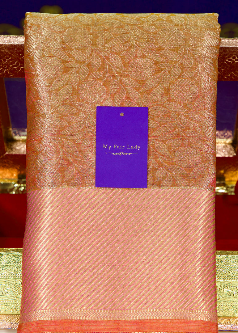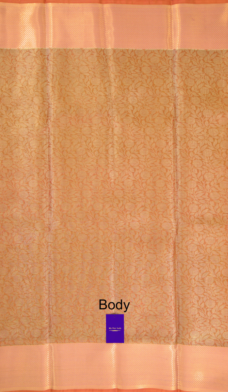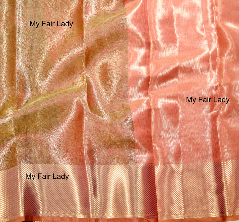 Brocade Tissue Semi-Silk Saree Pinkish Orange Colour - [Code 879]