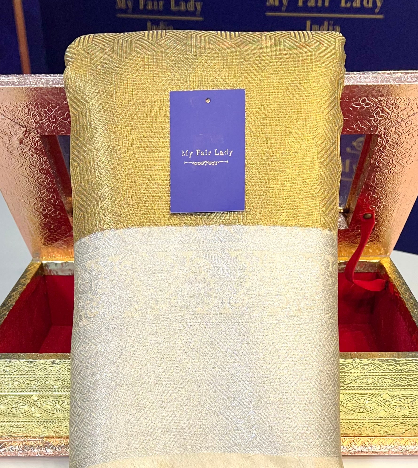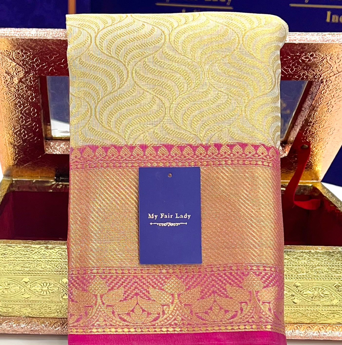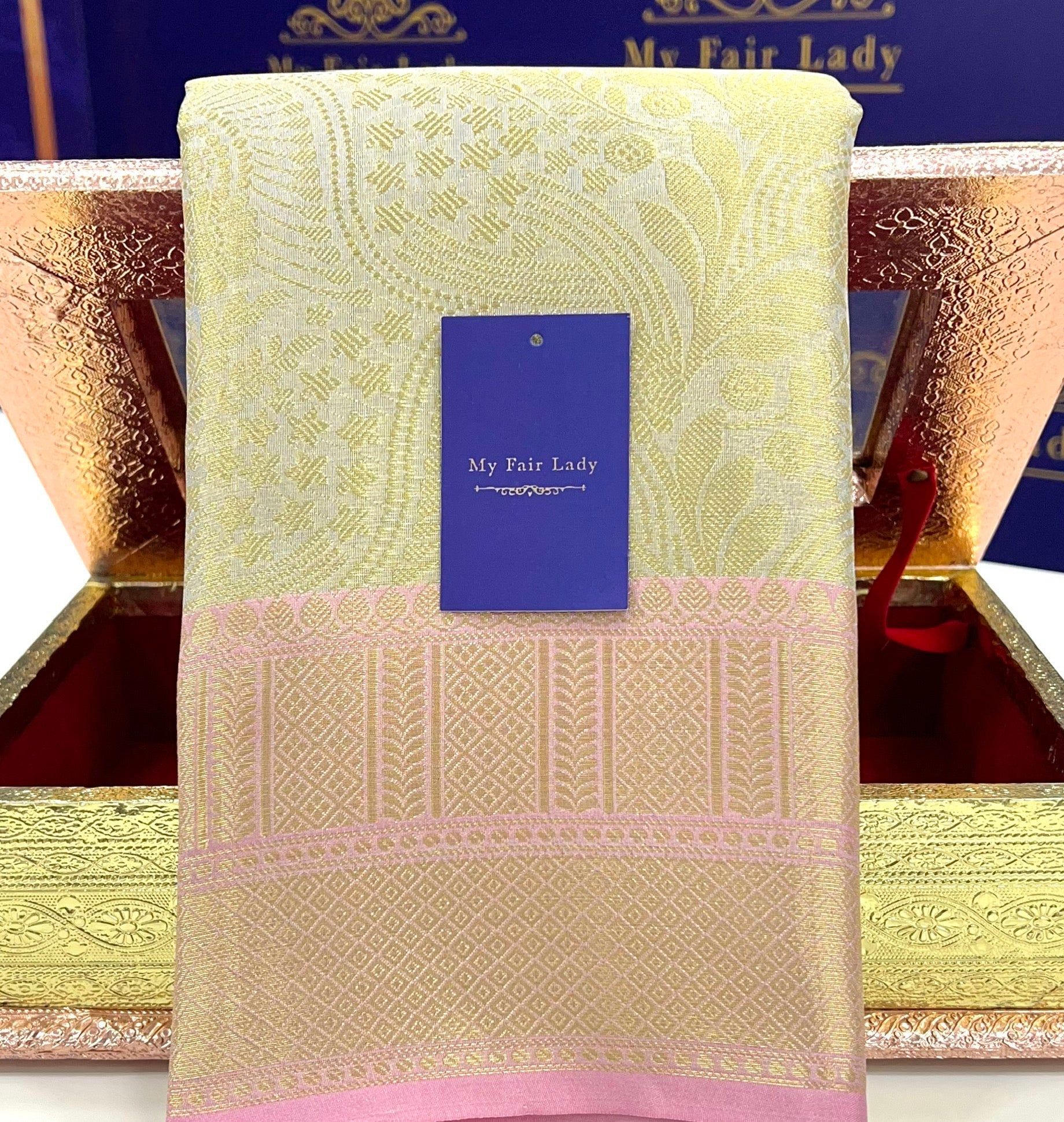 Brocade Tissue Semi-Silk Saree Gold Champagne Colour - [Code 892]