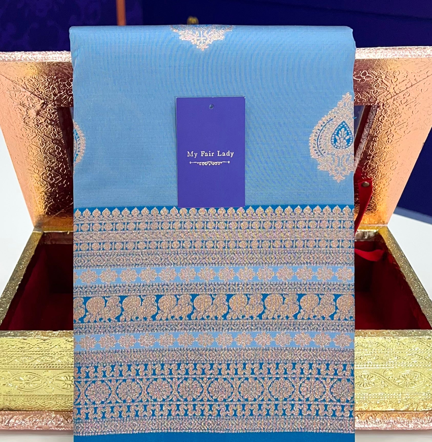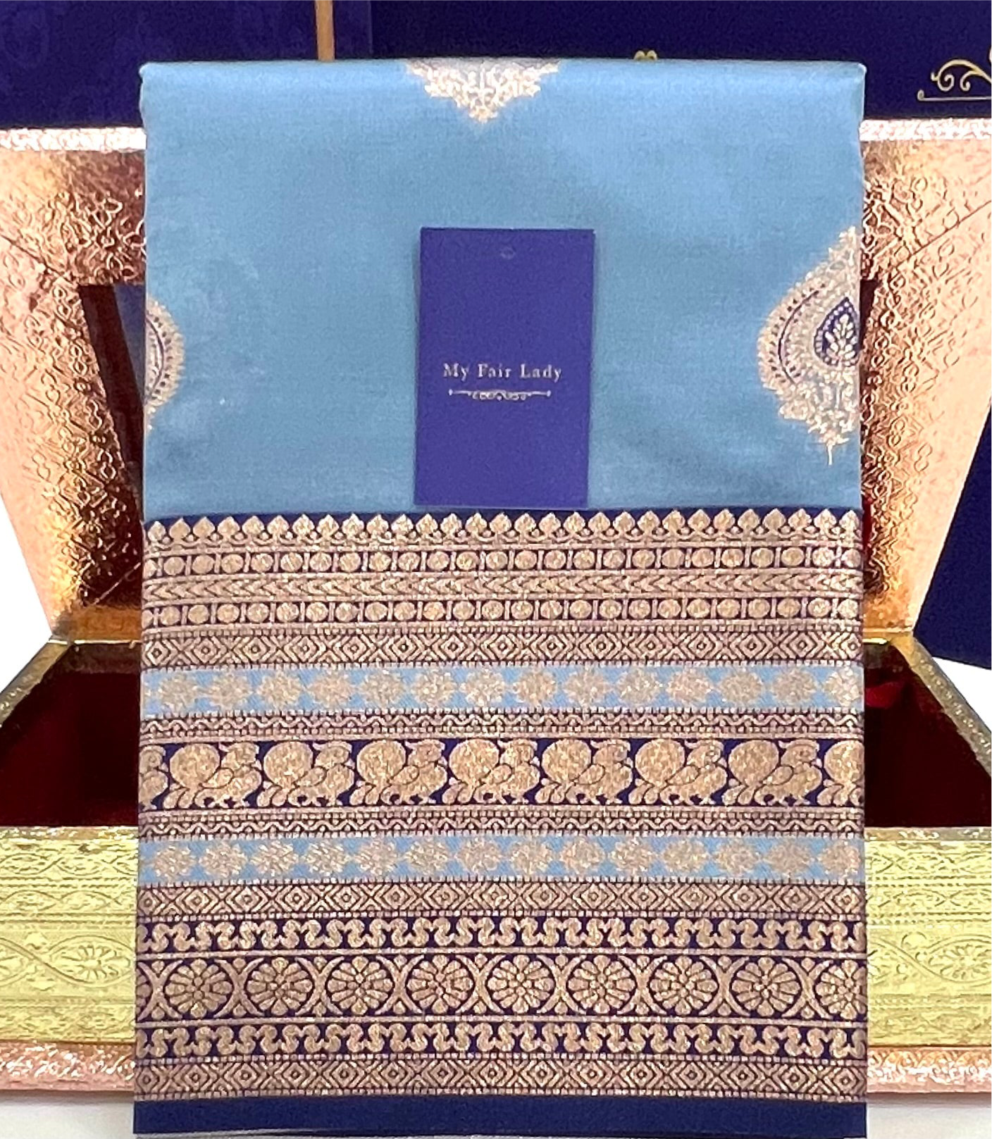 Brocade Semi-Silk Saree Peacock Blue Colour - [Code 877]