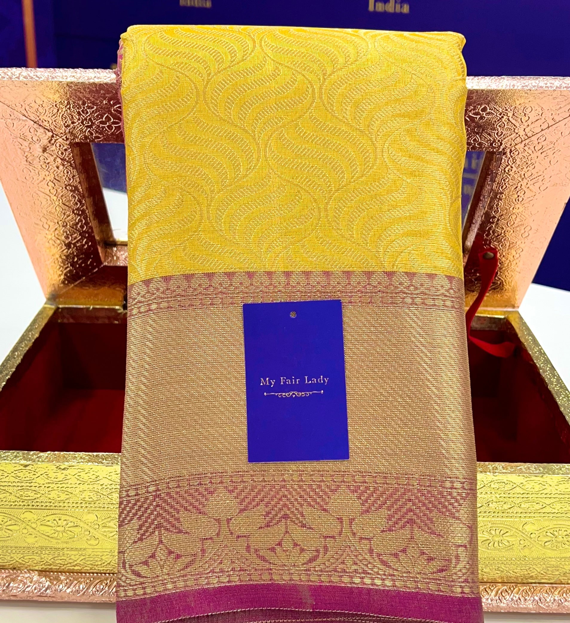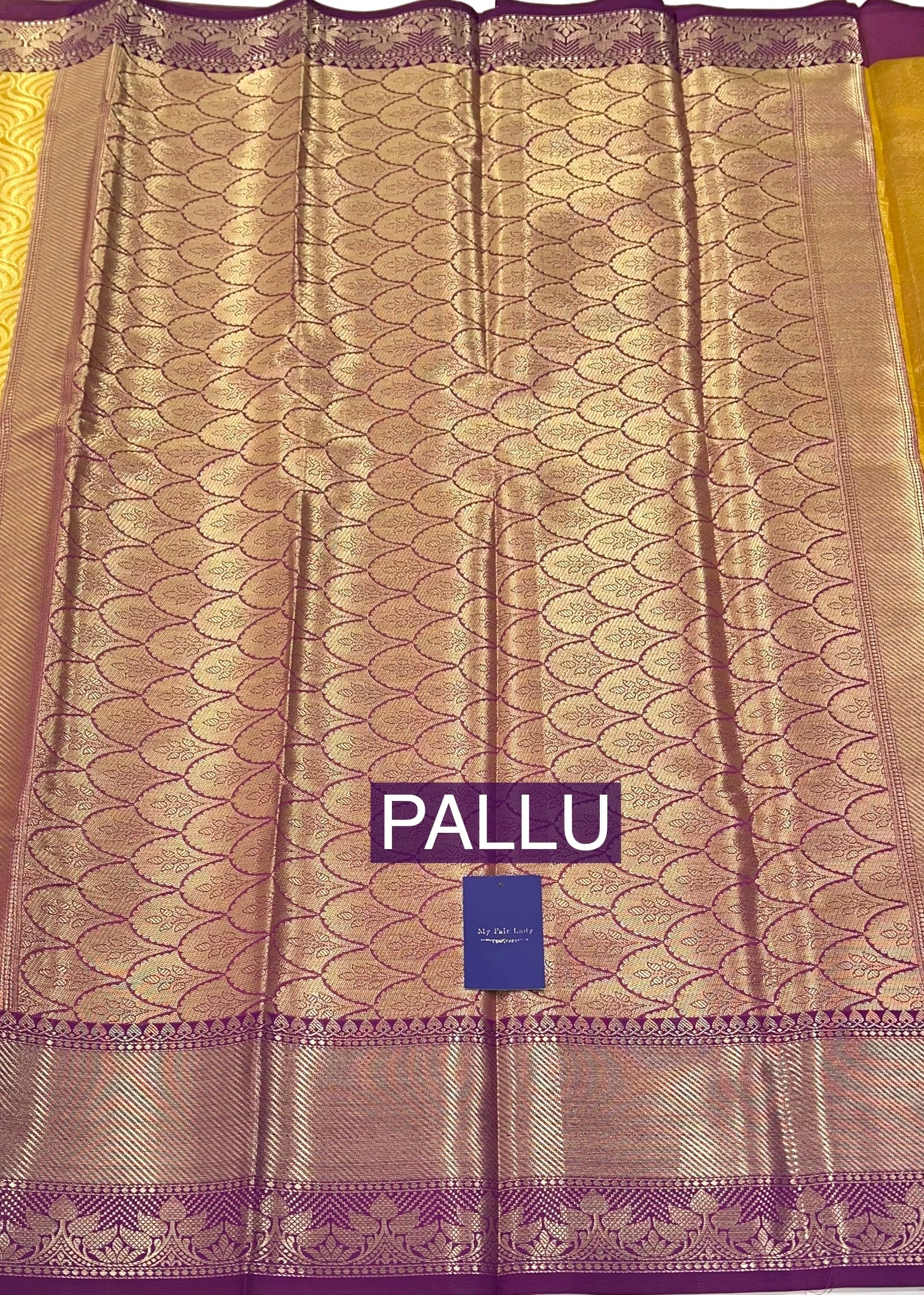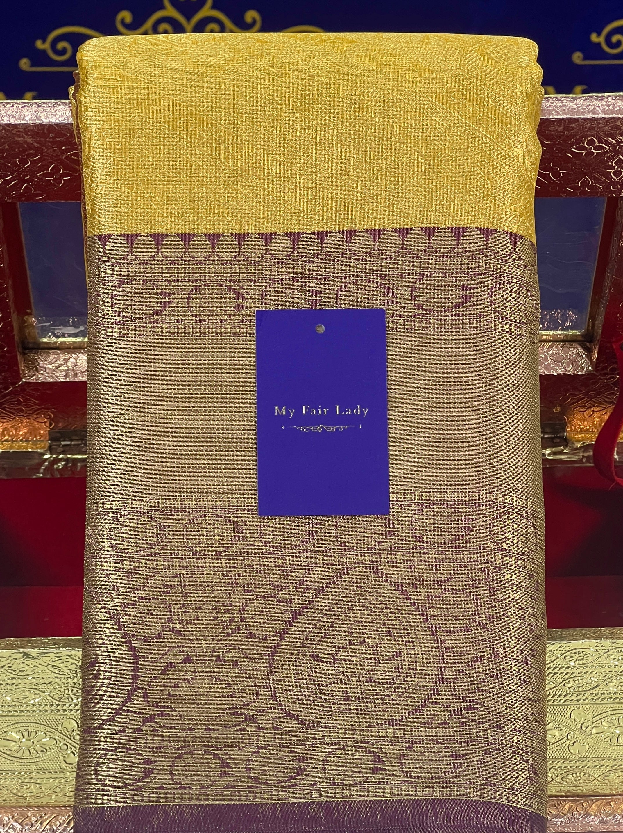 Brocade Tissue Semi-Silk Saree Golden Yellow Colour - [Code 882]