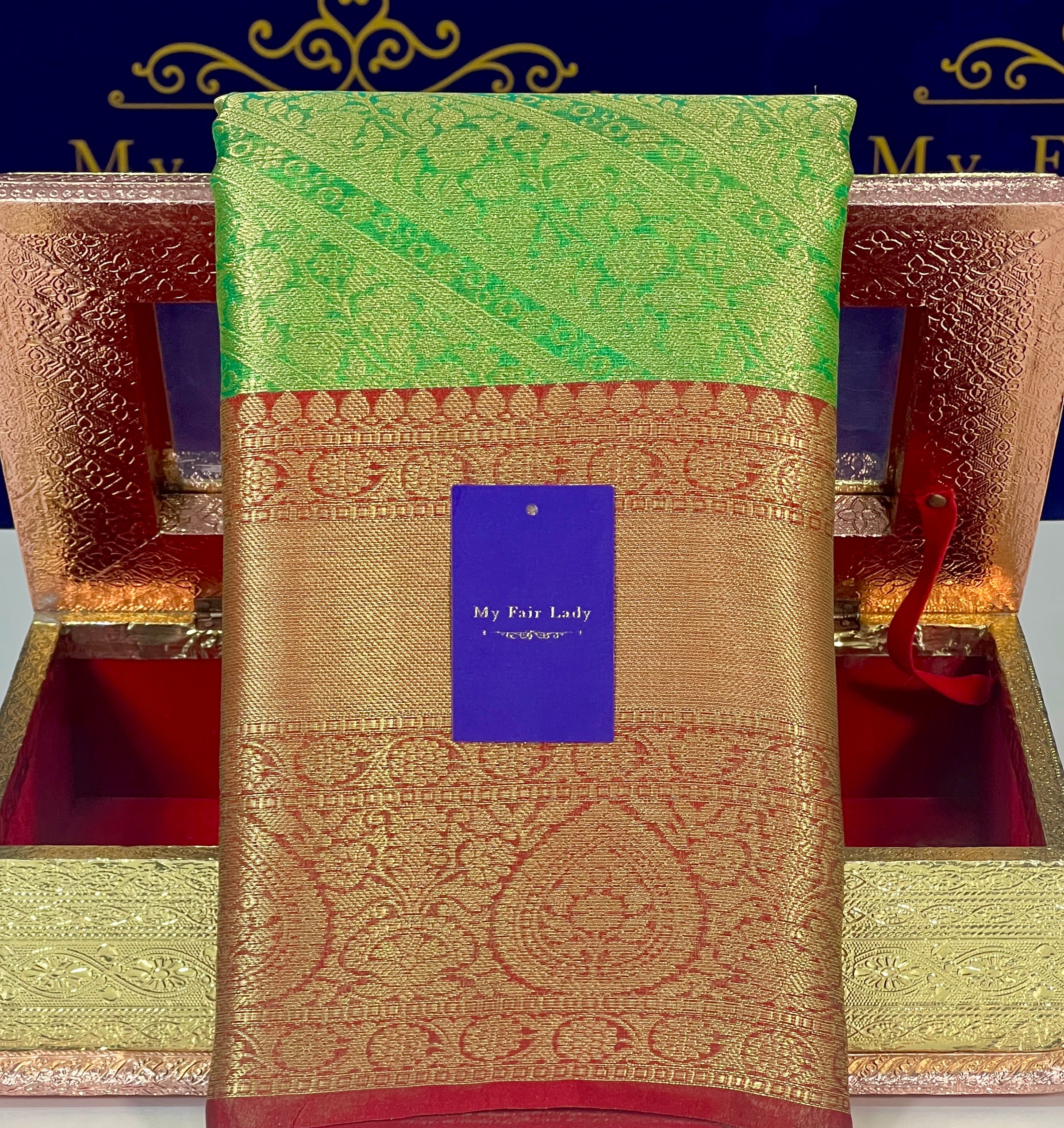Brocade Tissue Semi-Silk Saree Leaf Green Colour - [Code 884]