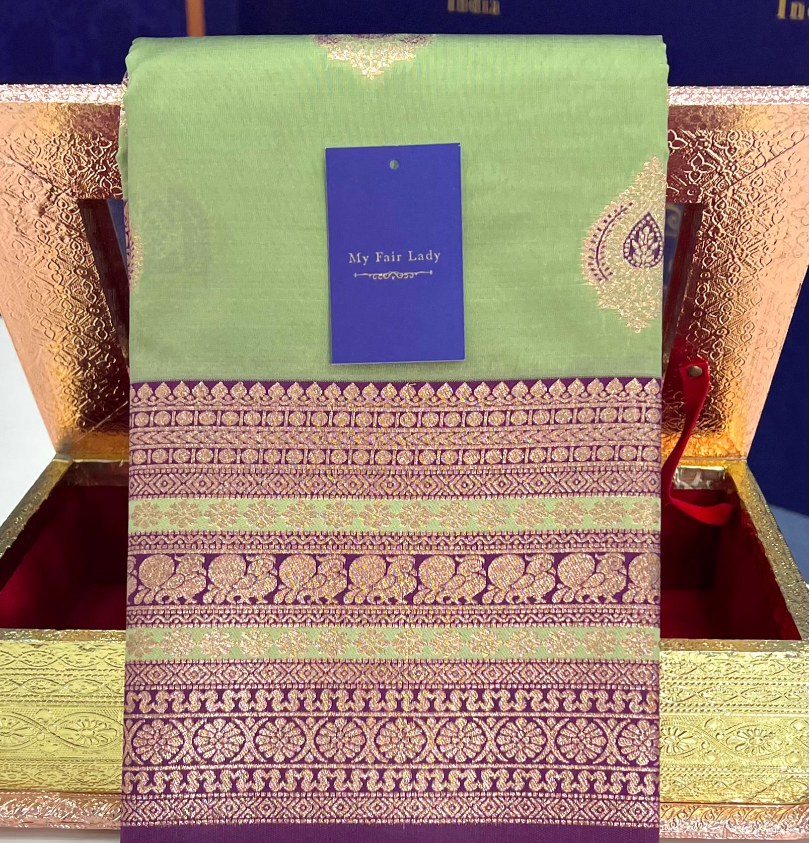 Brocade Tissue Semi-Silk Saree Moss Gold Colour - [Code 891]