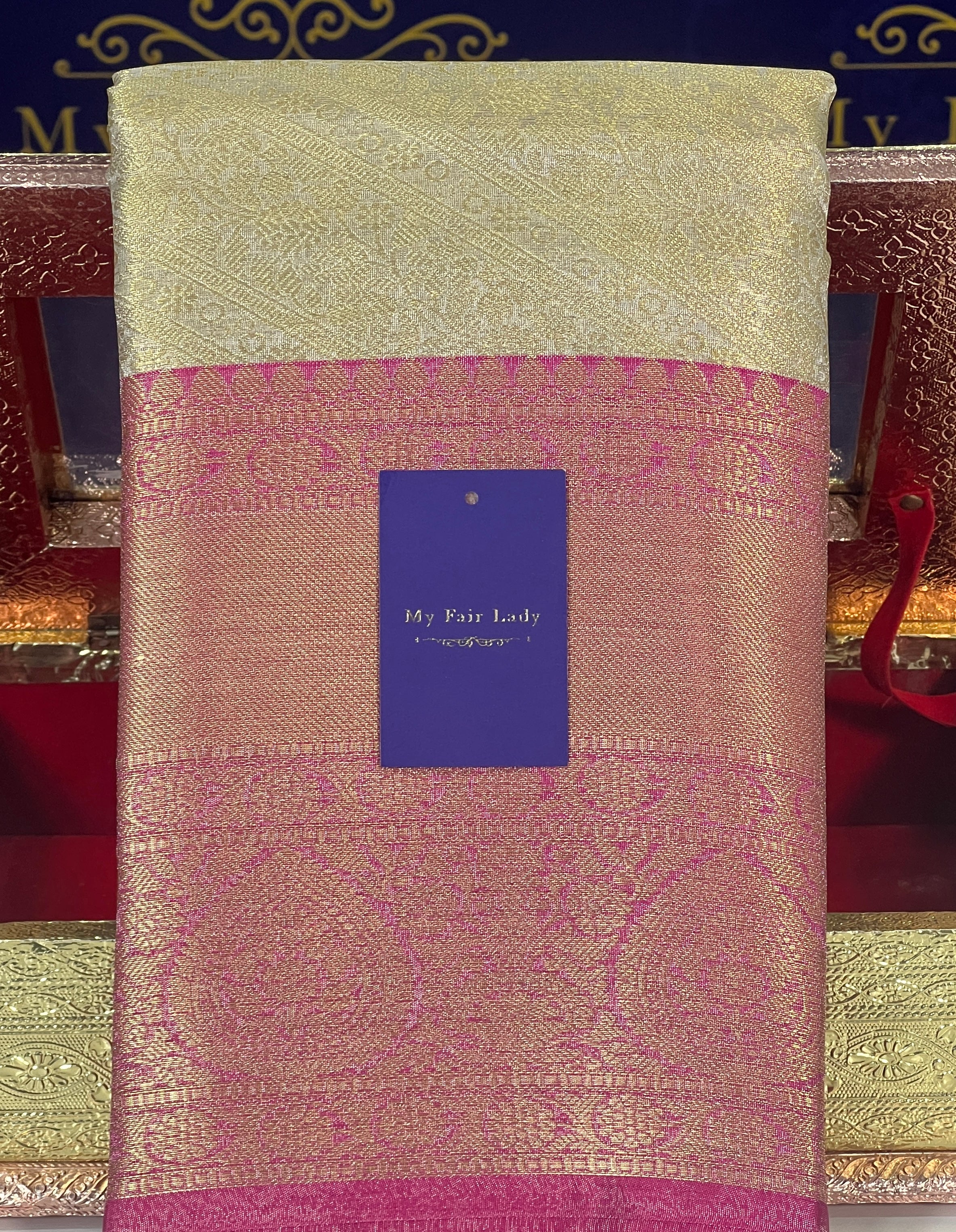 Brocade Tissue Semi-Silk Saree Champagne Colour - [Code 893]