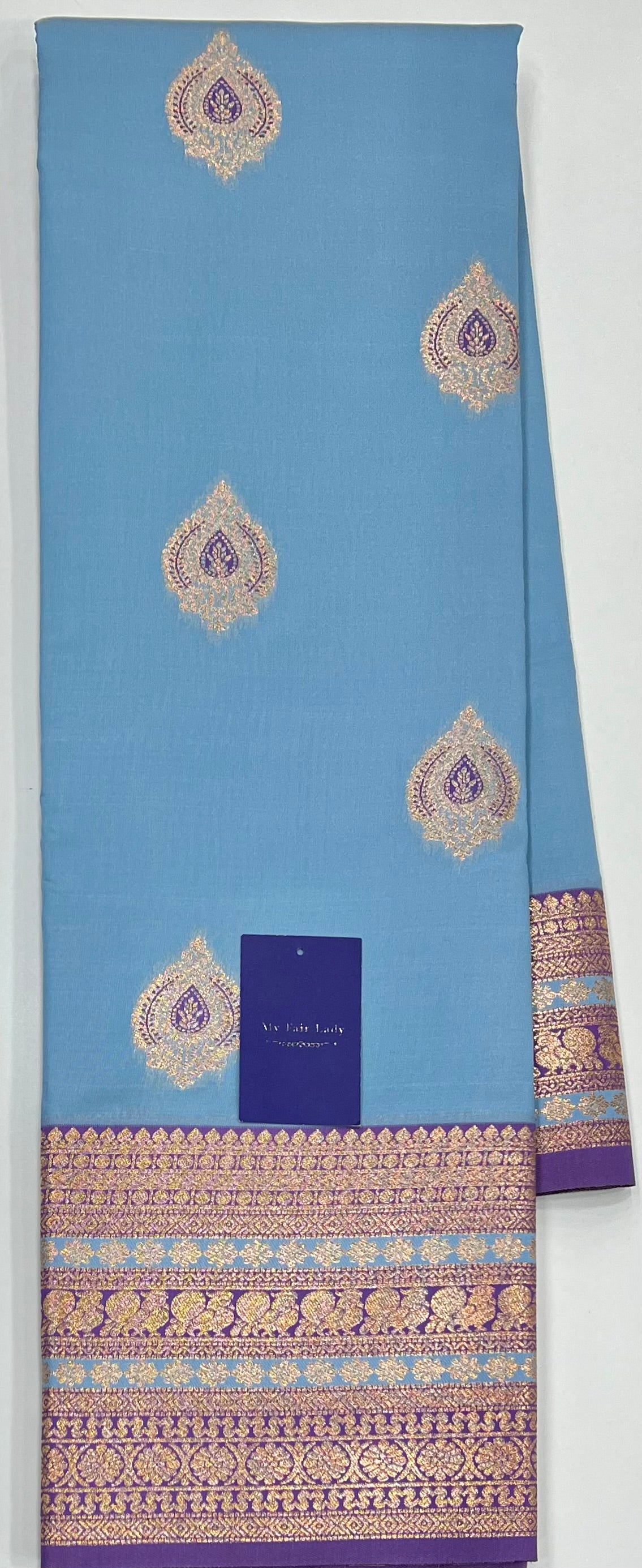 Butta Semi-Silk Saree Blue X Purple Colour - [Code 878]