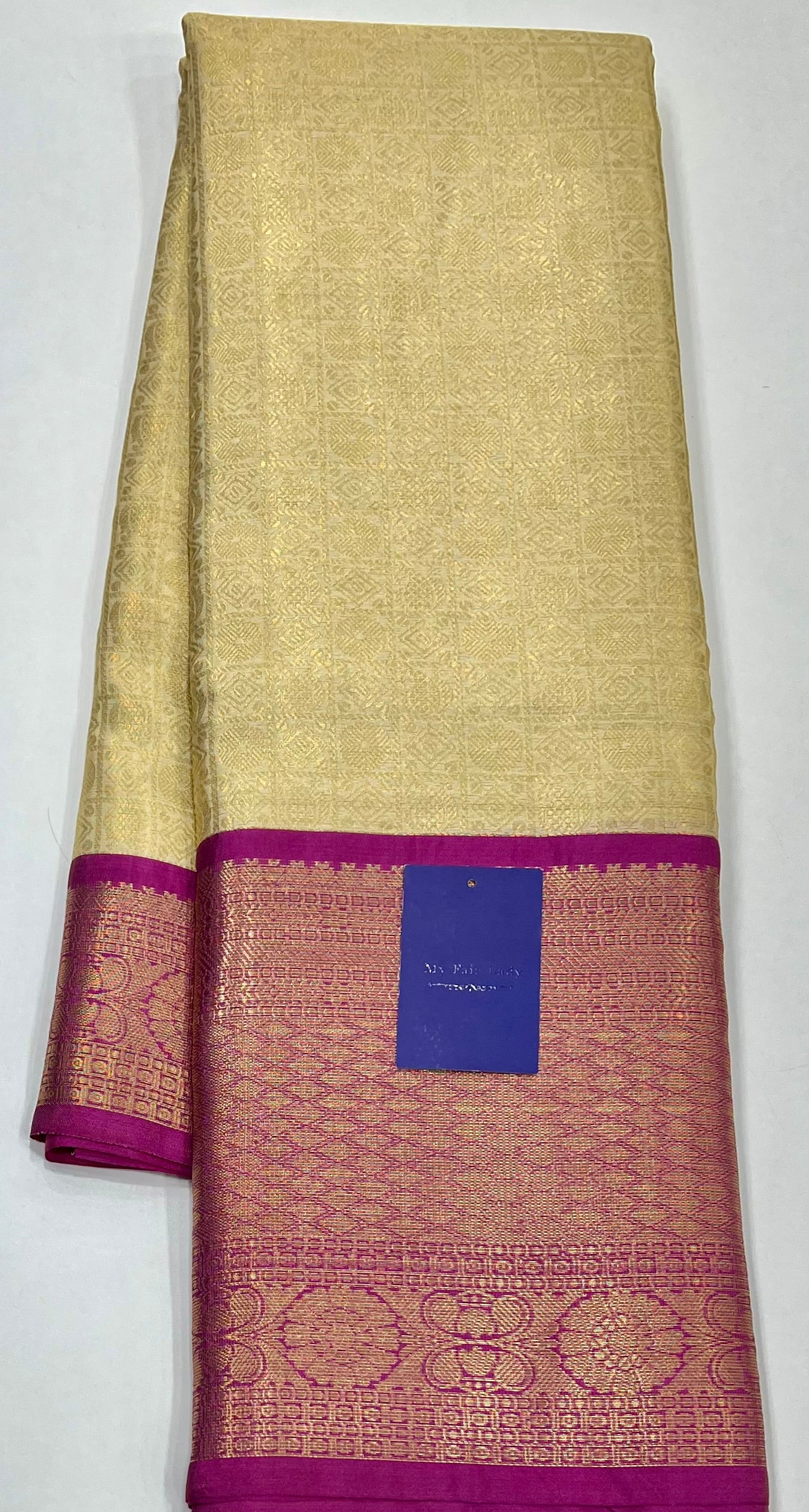 Brocade Tissue Semi-Silk Saree Cream Colour - [Code 892]