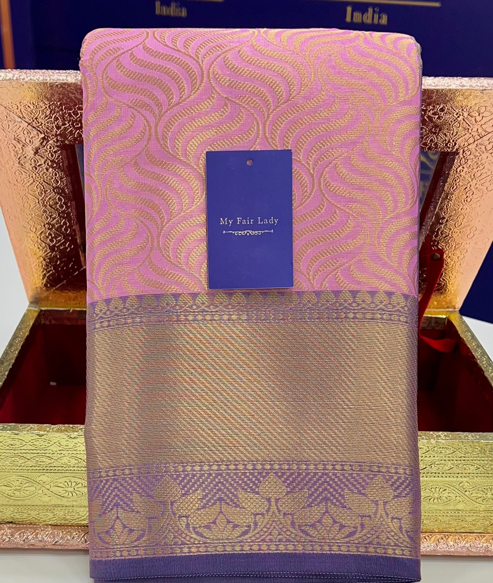 Brocade Tissue Semi-Silk Saree Lavender Colour - [Code 890]