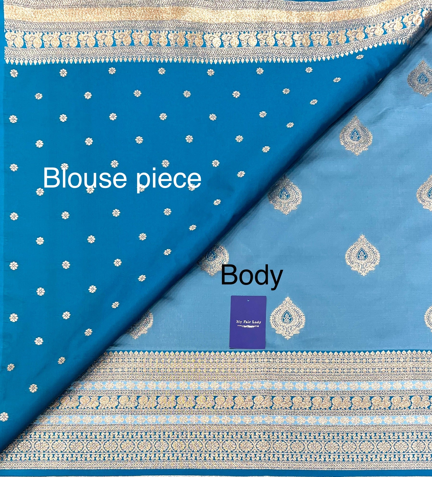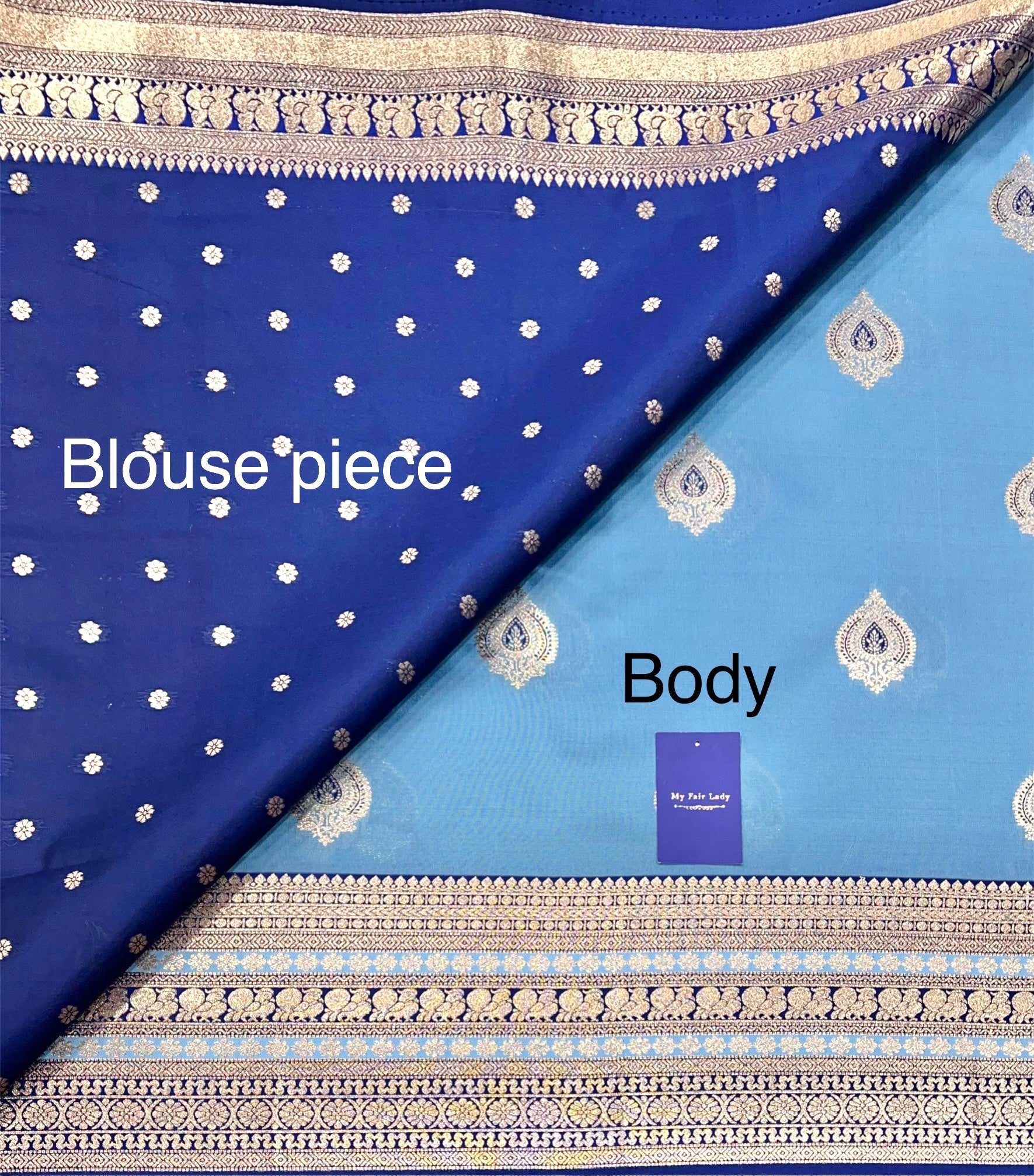 Butta Semi-Silk Saree Blue X Dark Blue Colour - [Code 878]
