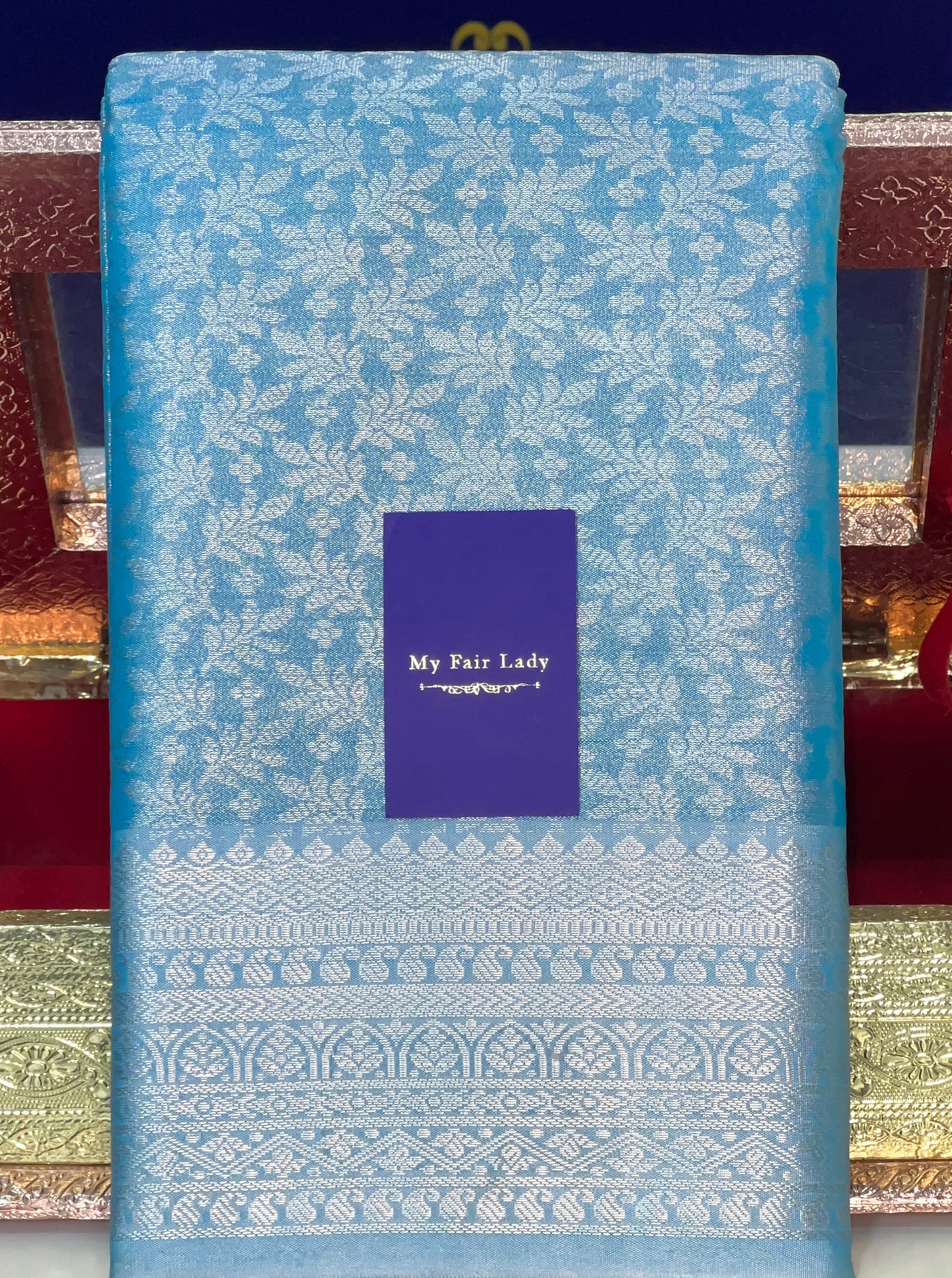 Brocade Semi-Silk Saree Aqua Blue Colour - [Code 669]