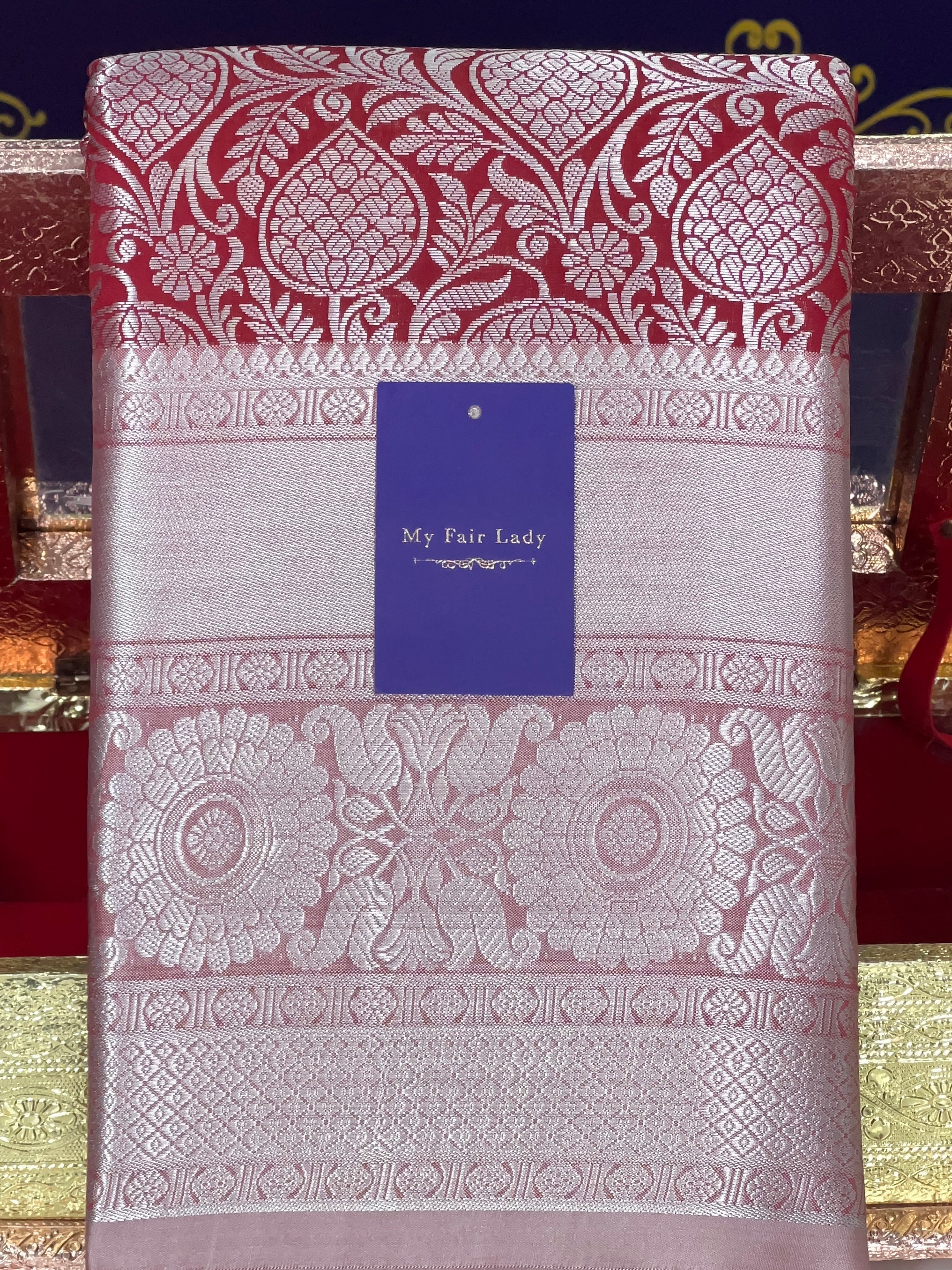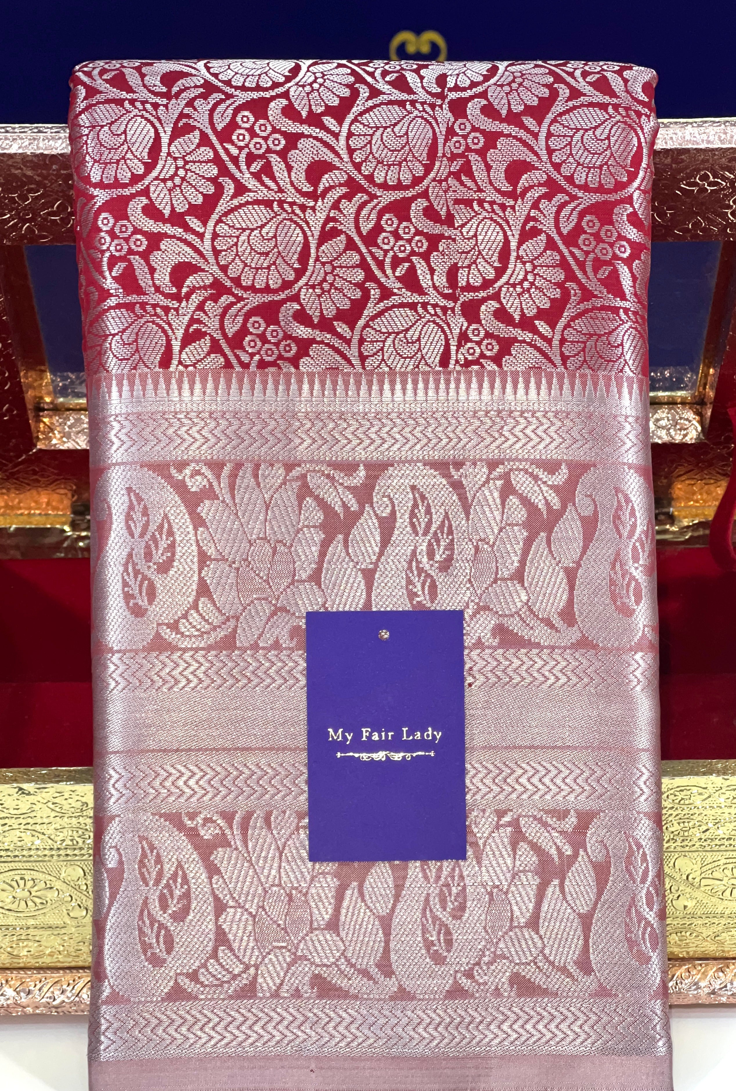 Brocade Semi-Silk Saree Rich Burgundy Colour - [Code 669]