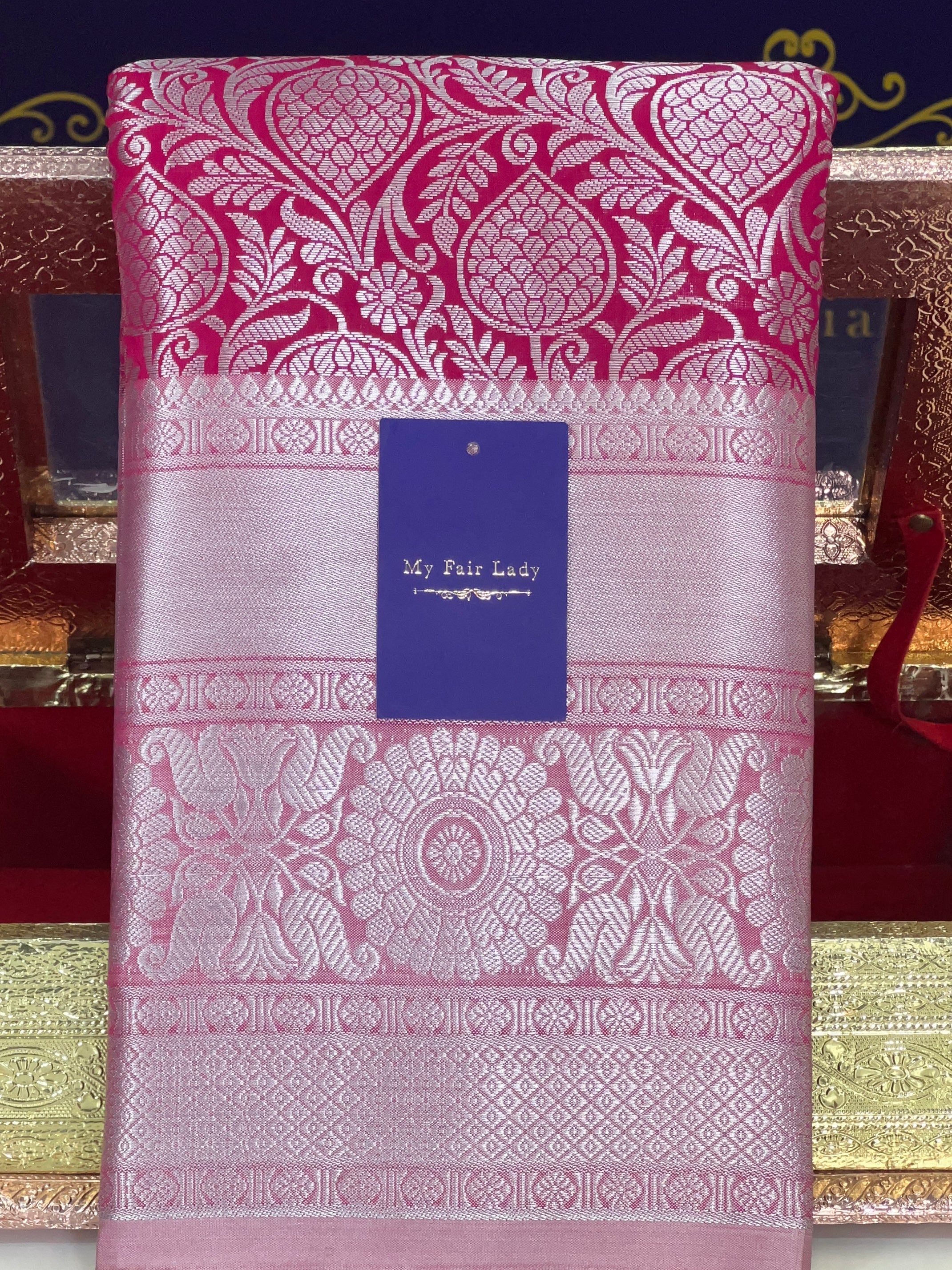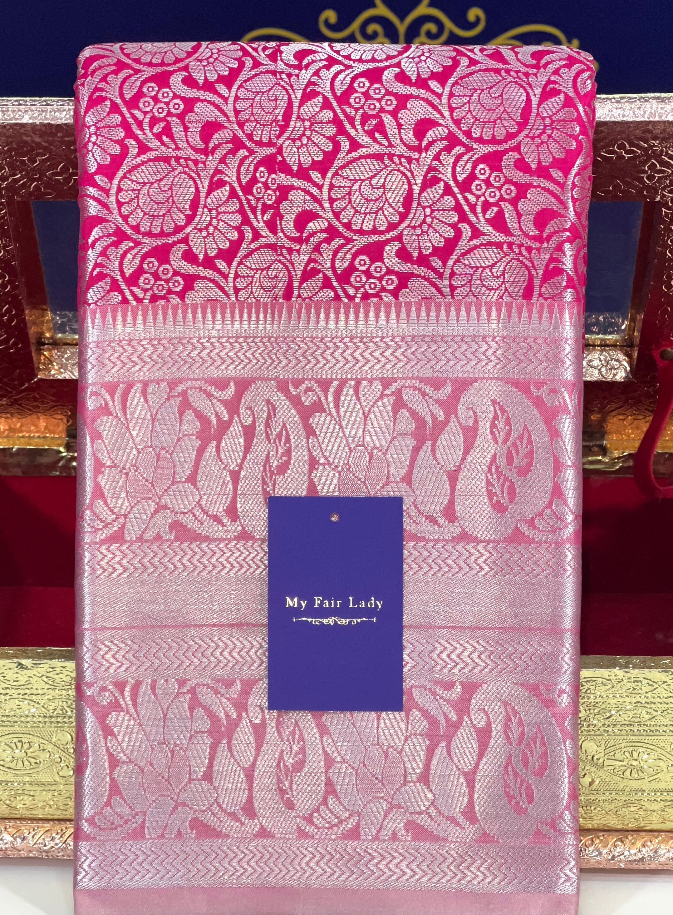 Brocade Semi-Silk Saree Punch Pink Colour - [Code 669]