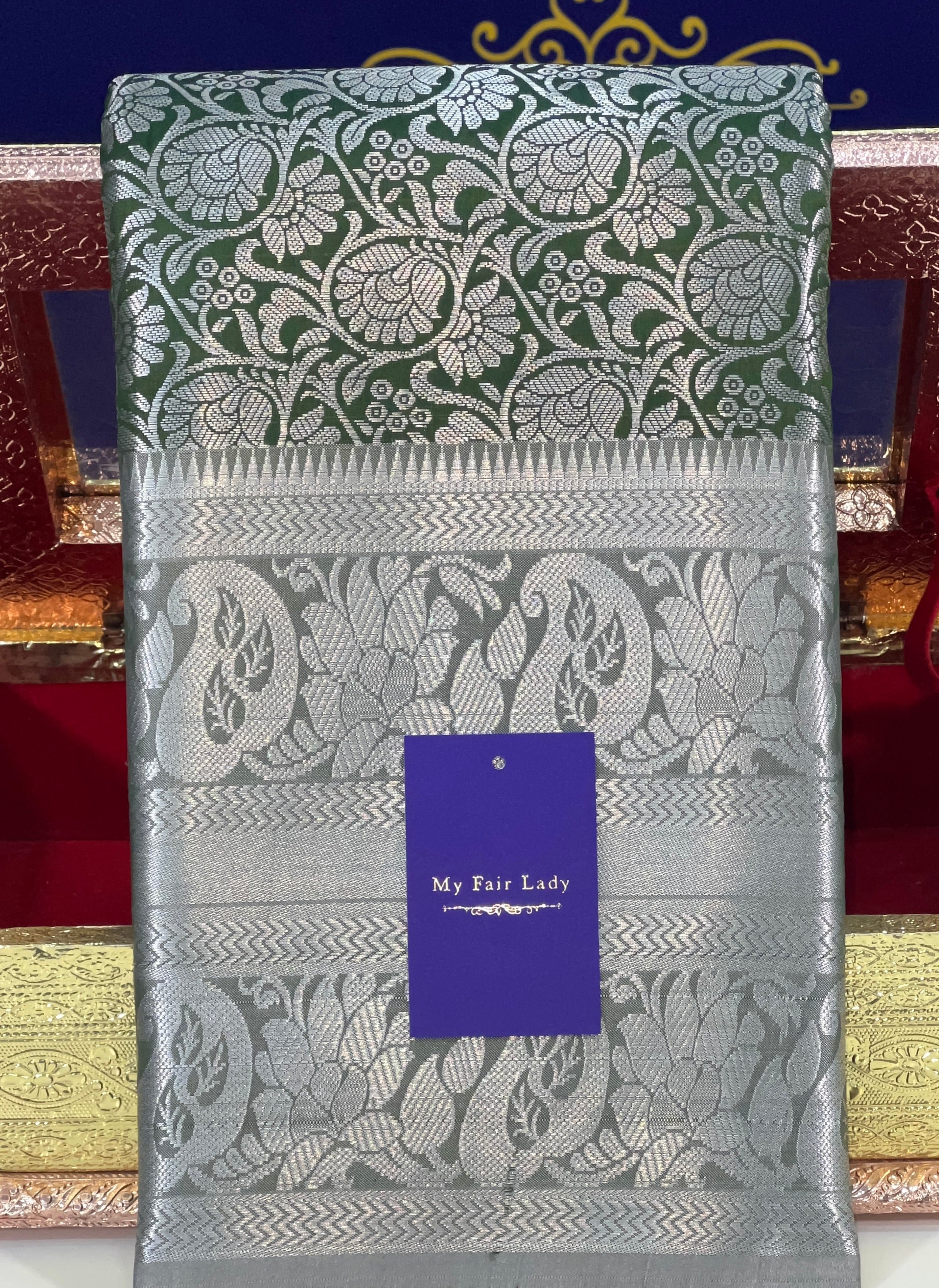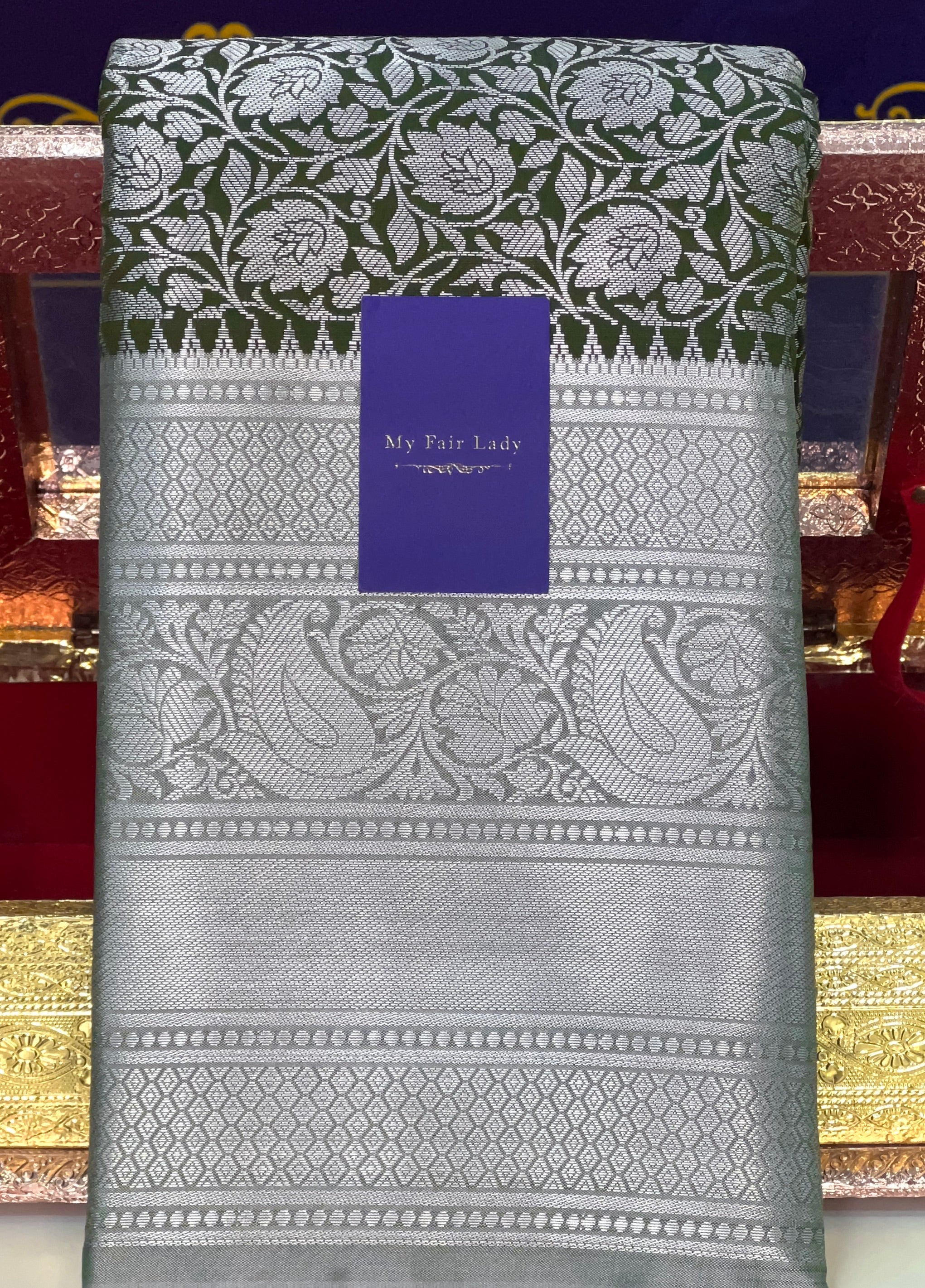 Brocade Semi-Silk Saree Olive Green Colour - [Code 675]