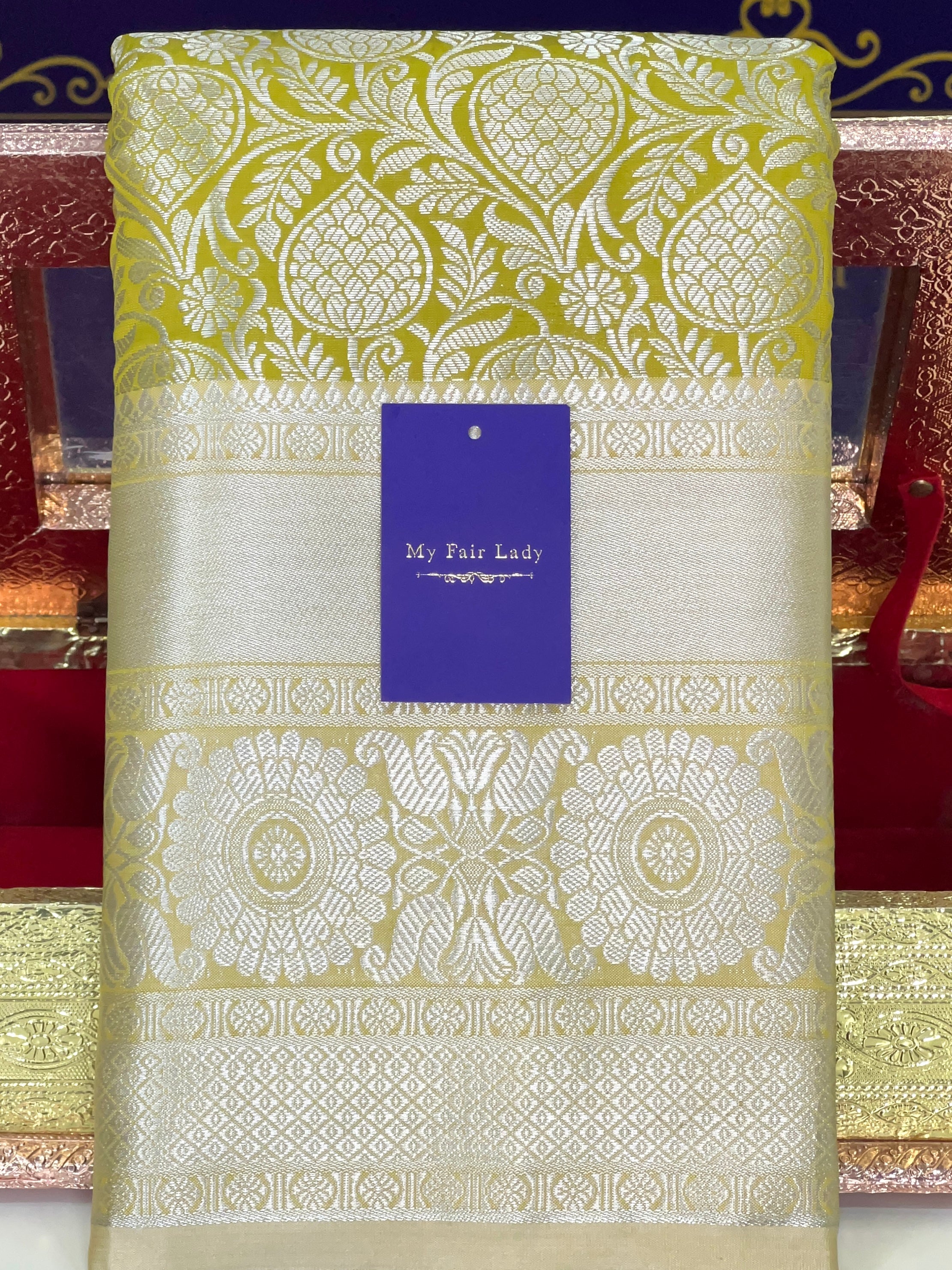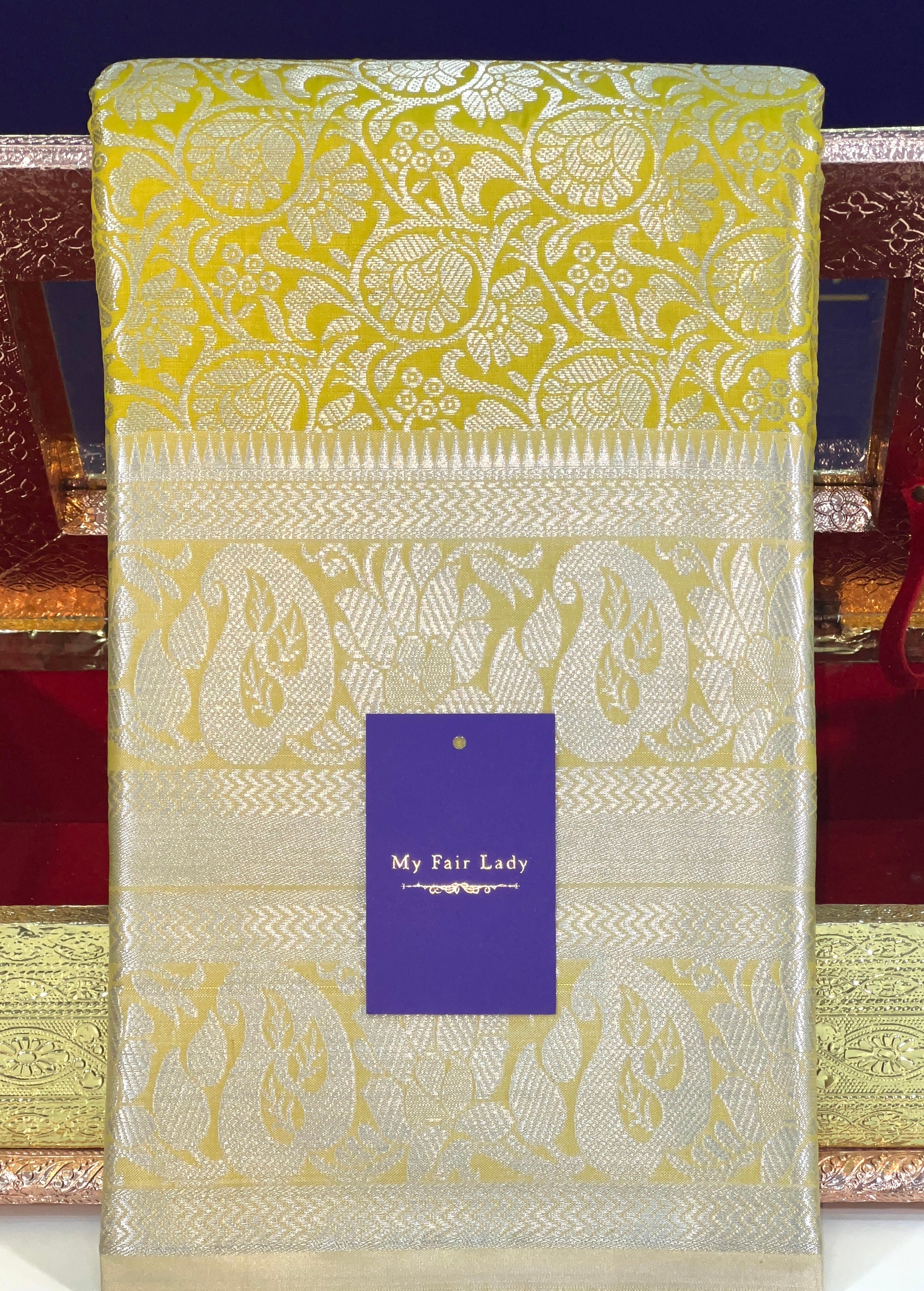 Brocade Semi-Silk Saree Soothing Yellow Colour - [Code 669]