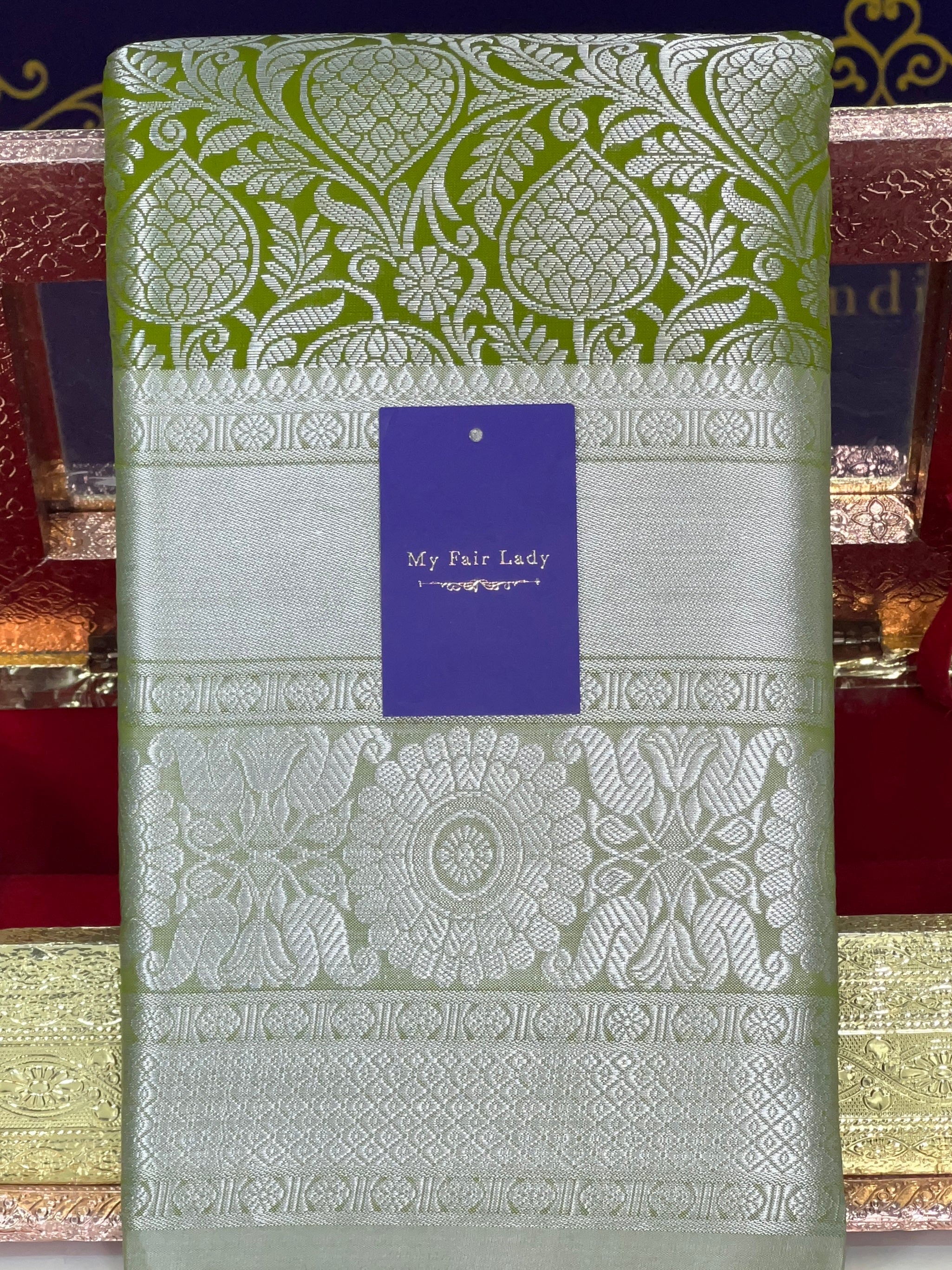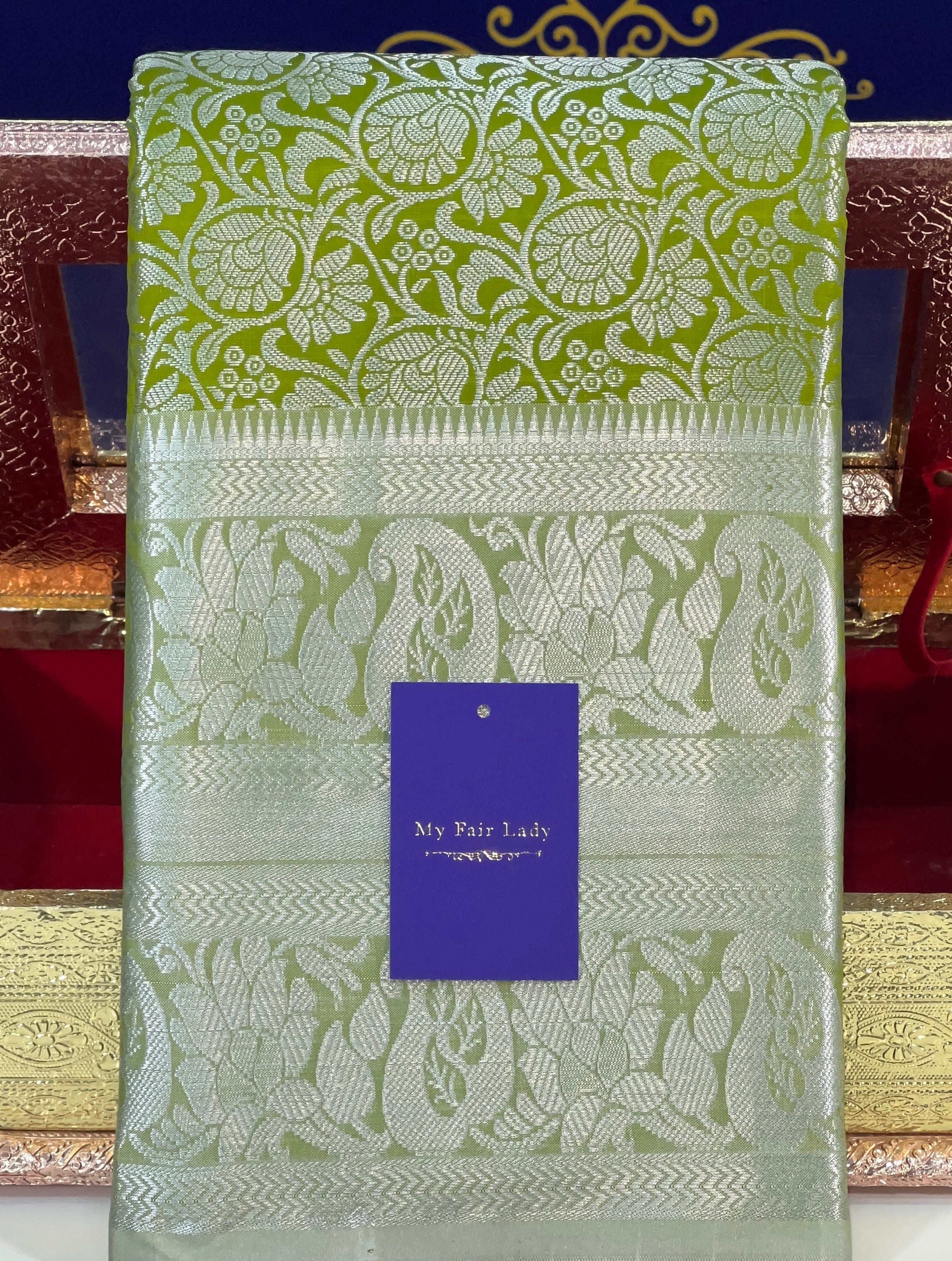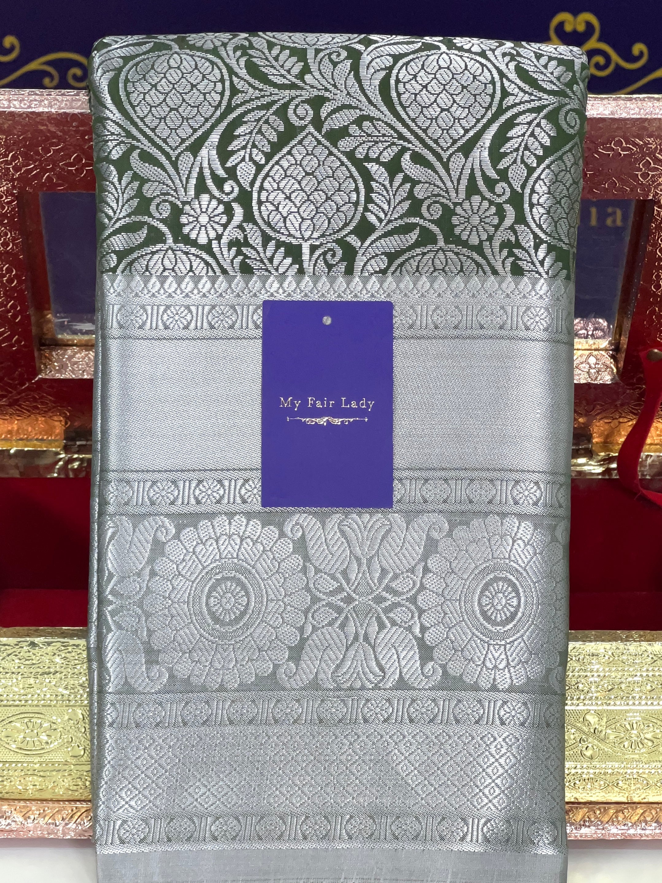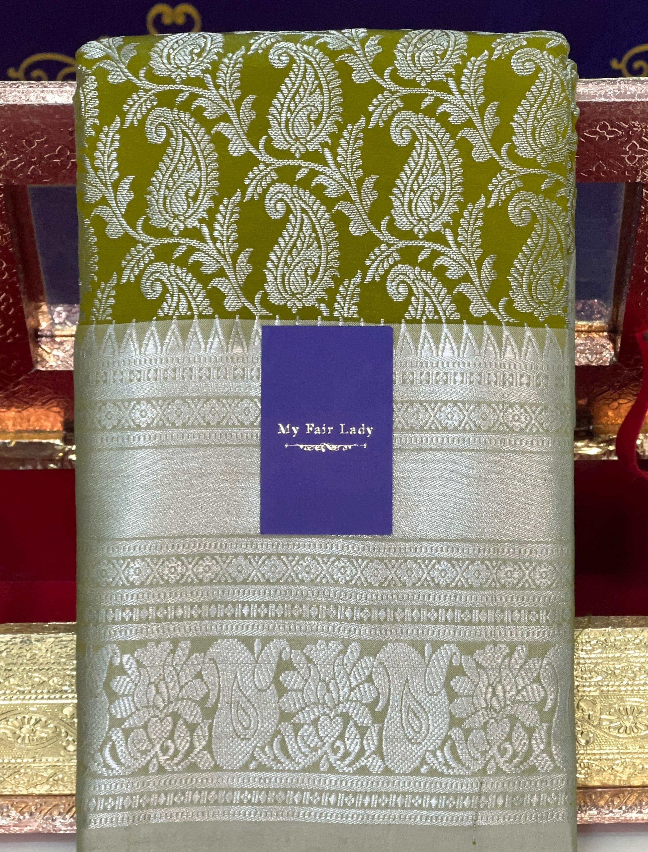 Brocade Semi-Silk Saree Olive Green Colour - [Code 669]