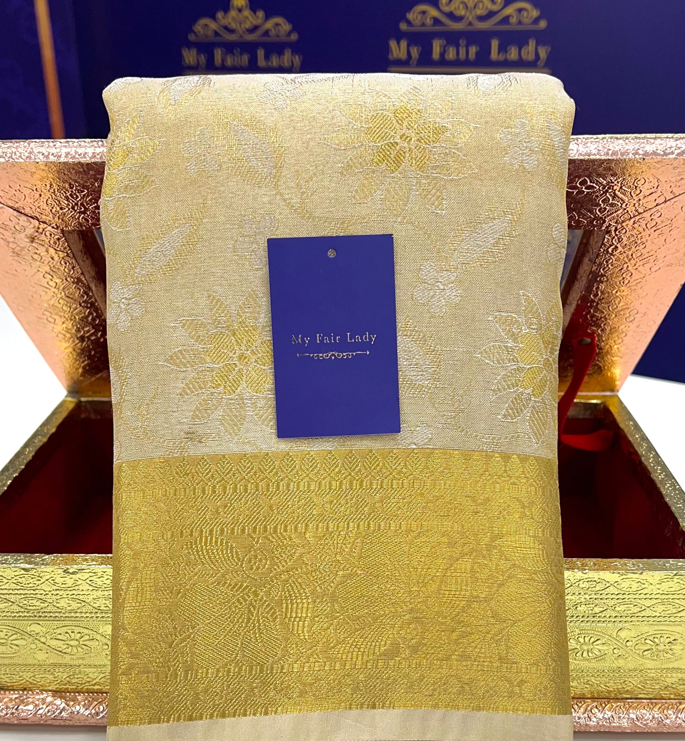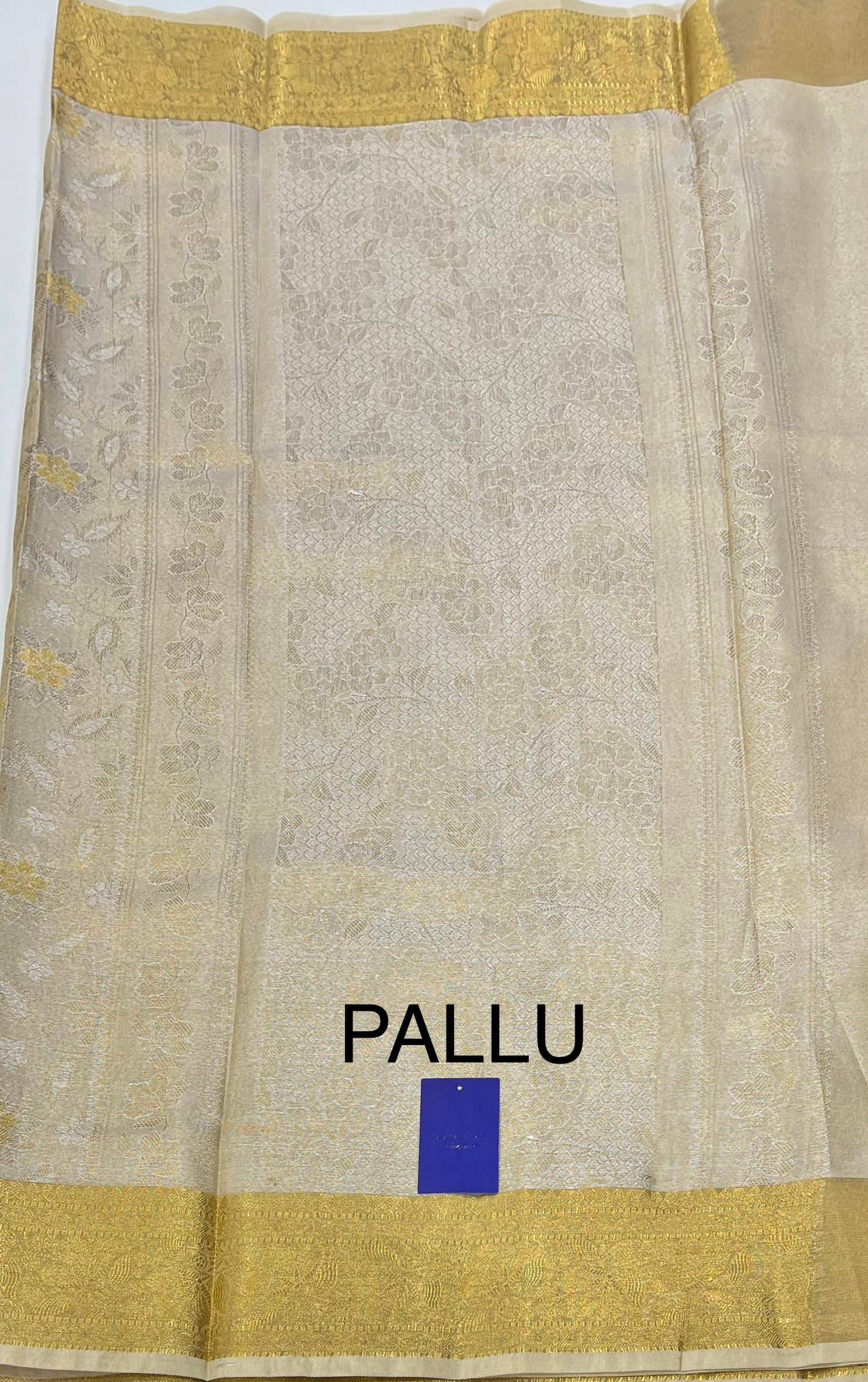 Brocade Tissue Semi-Silk Saree Off White X Gold Colour - [Code 895]