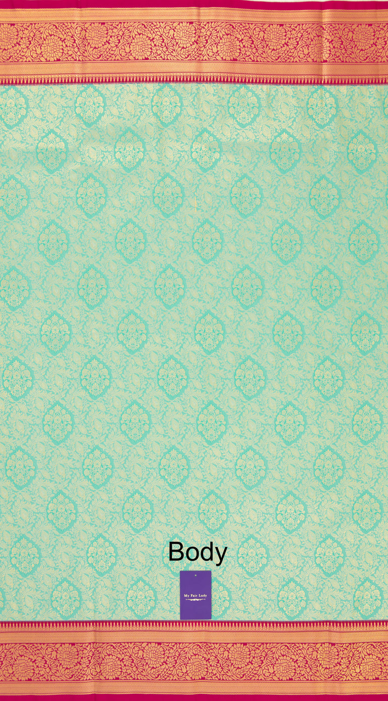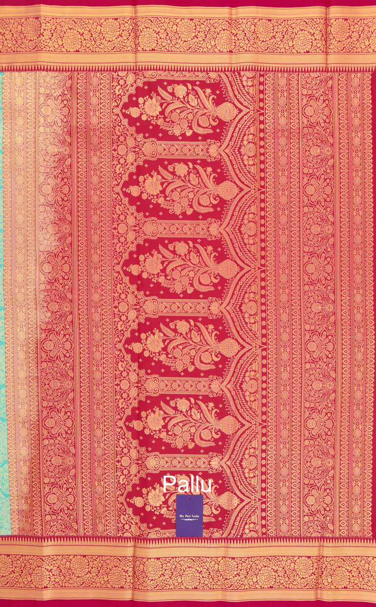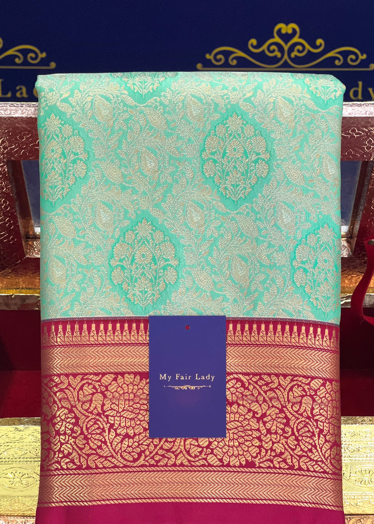 Premium Brocade Semi-Silk Saree Cyan Blue Colour- [Code 992]