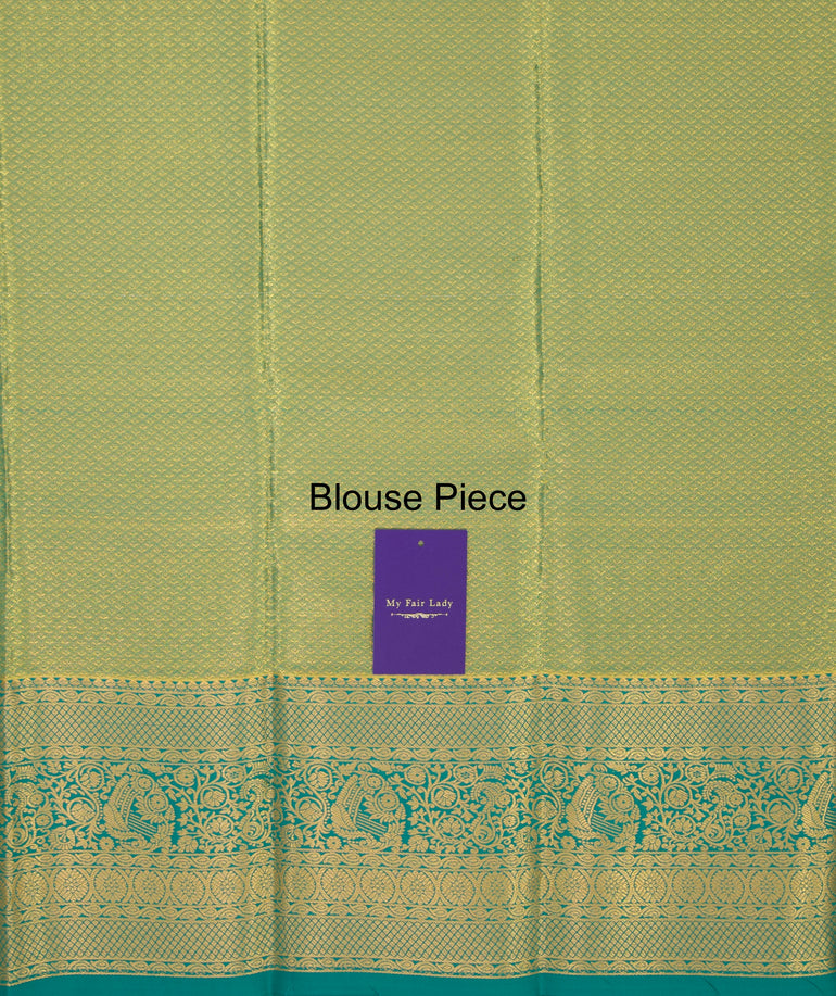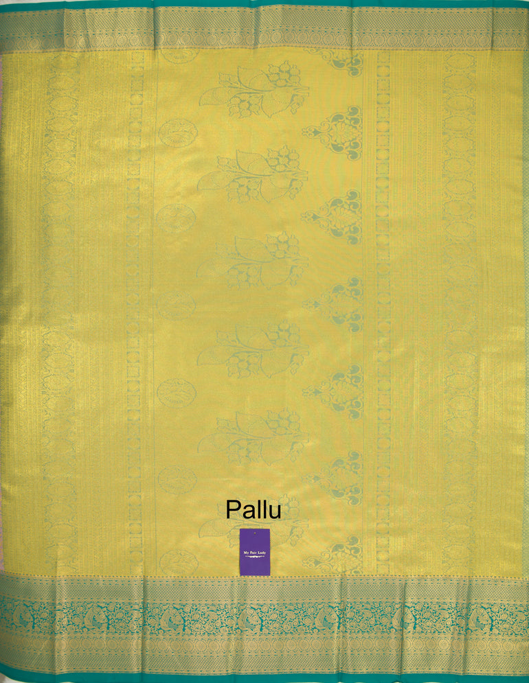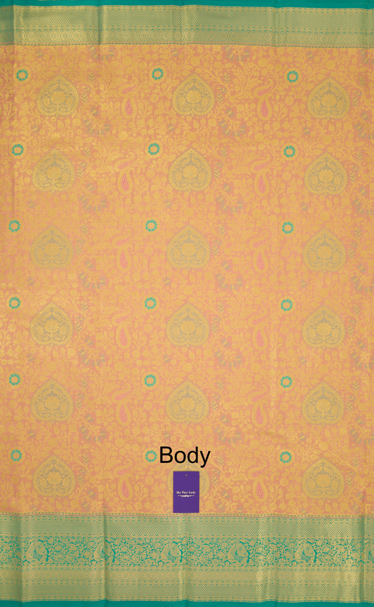 Premium Brocade Semi-Silk Saree Peach X Dark Teal Colour- [Code 990]