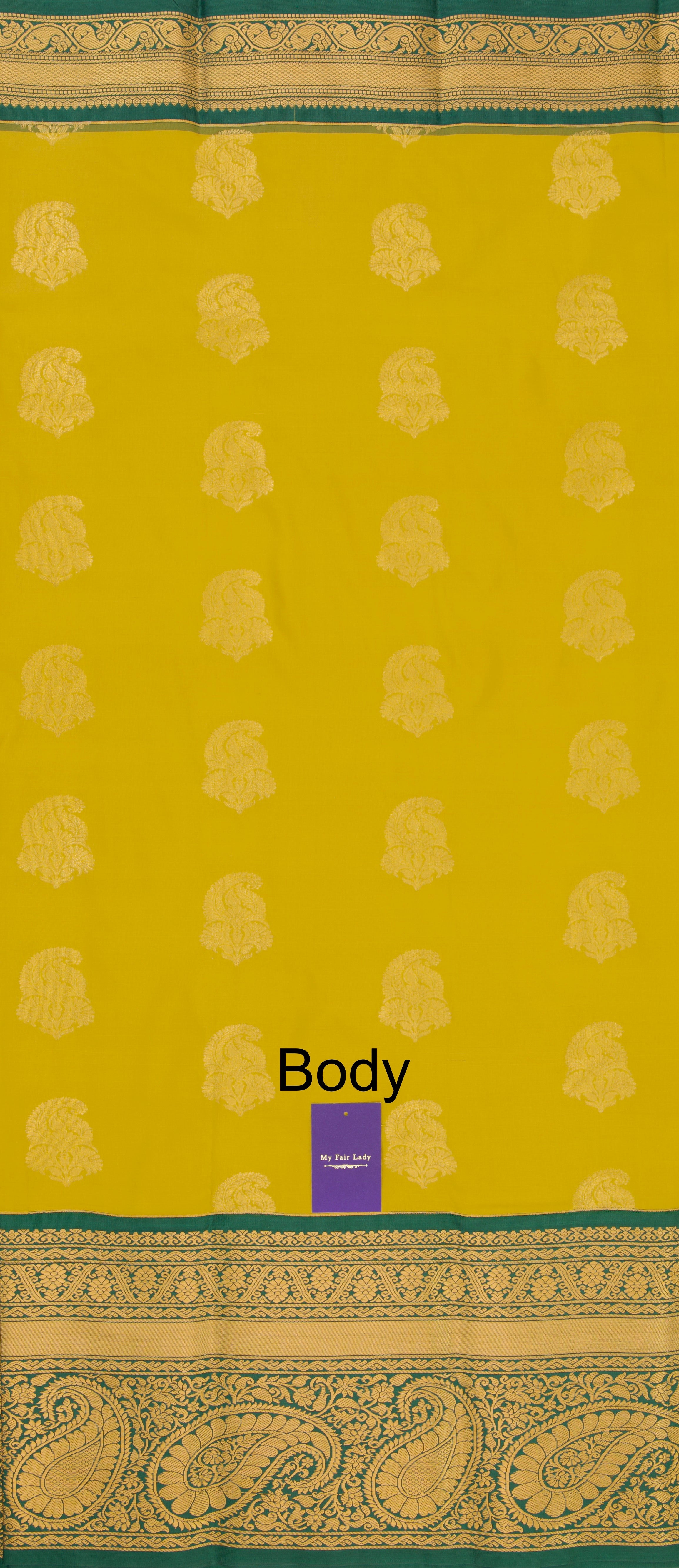 Butta Semi-Silk Saree Mustard X Green Colour - [Code 874]