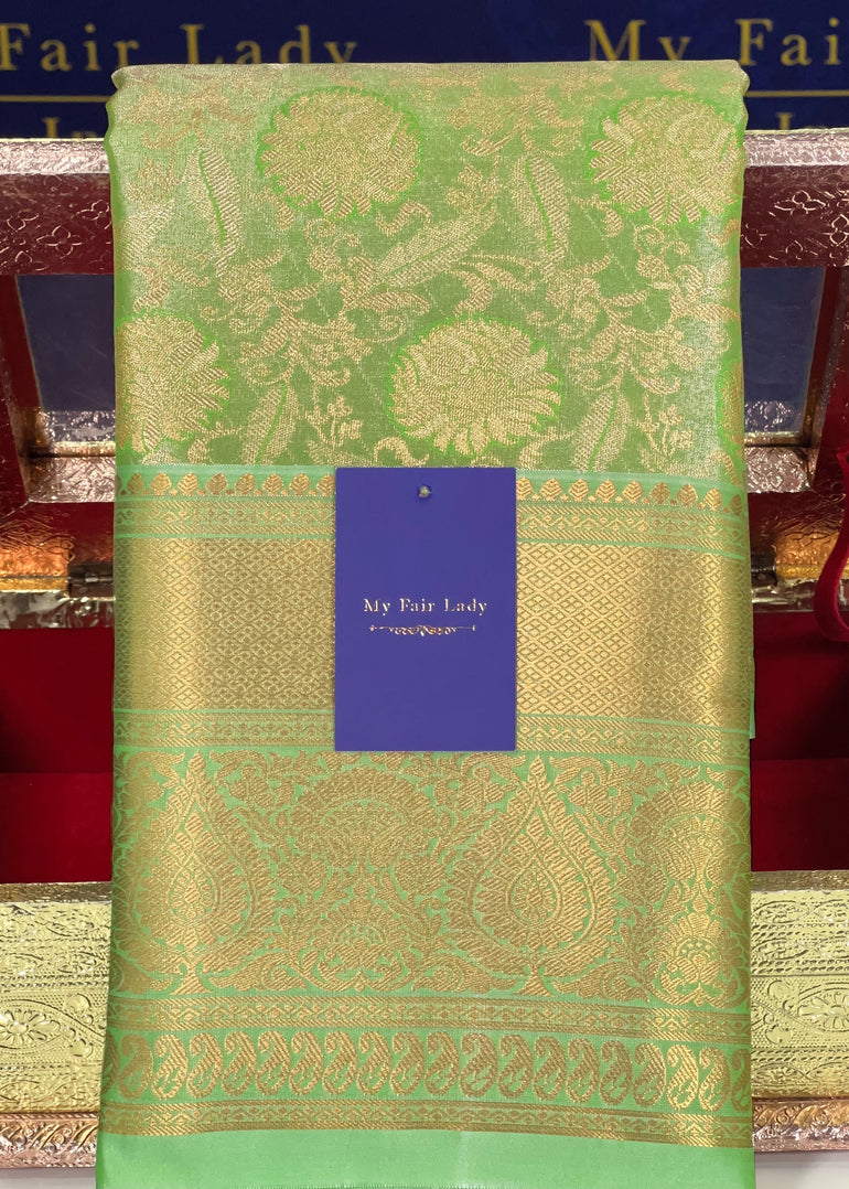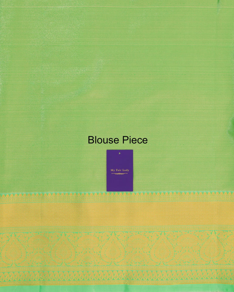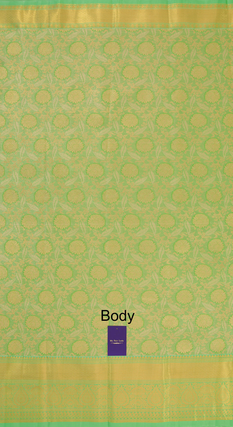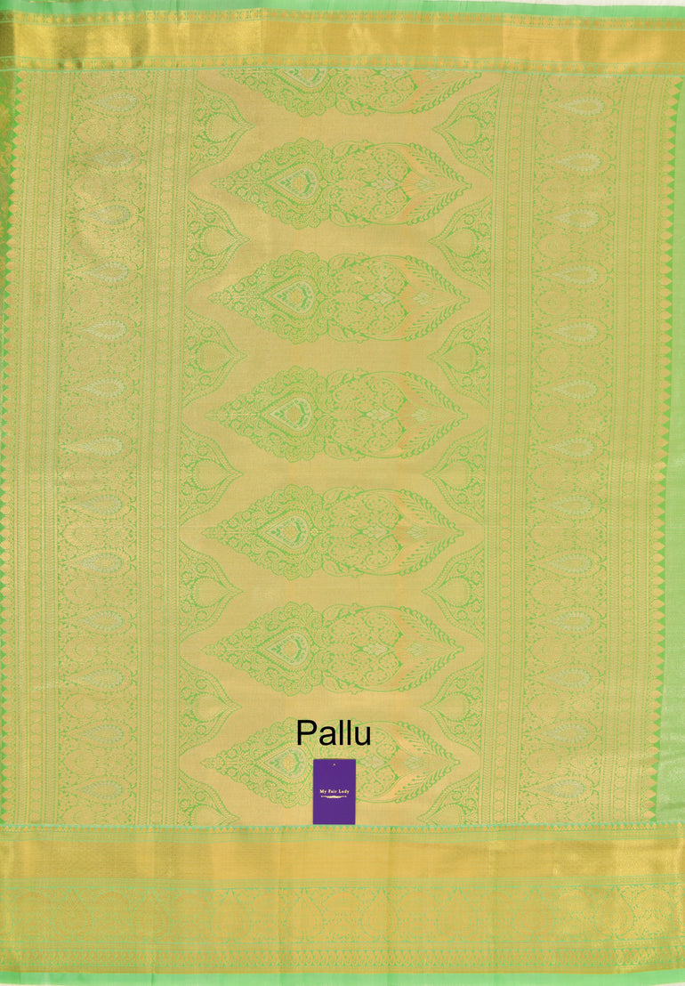 Brocade Semi-Silk Saree Bright Green Colour - [Code 875]