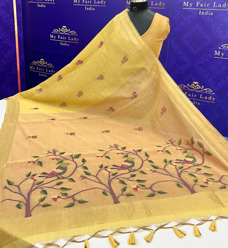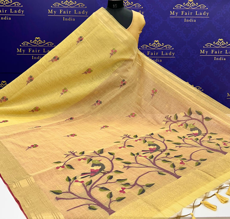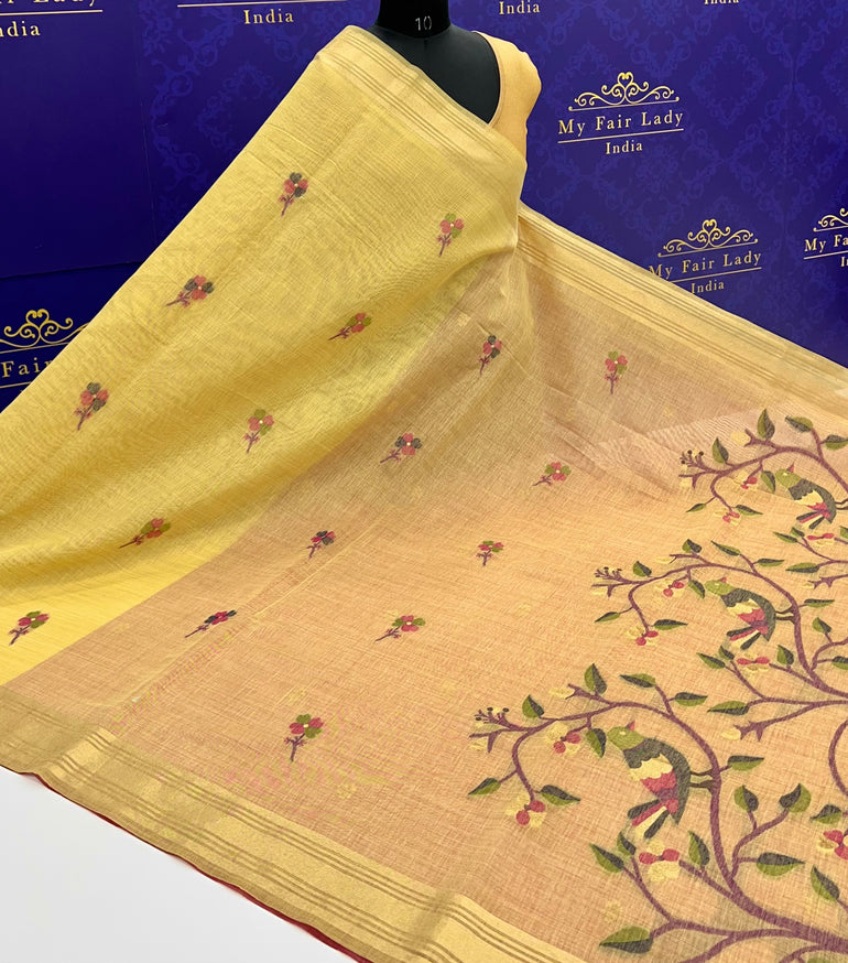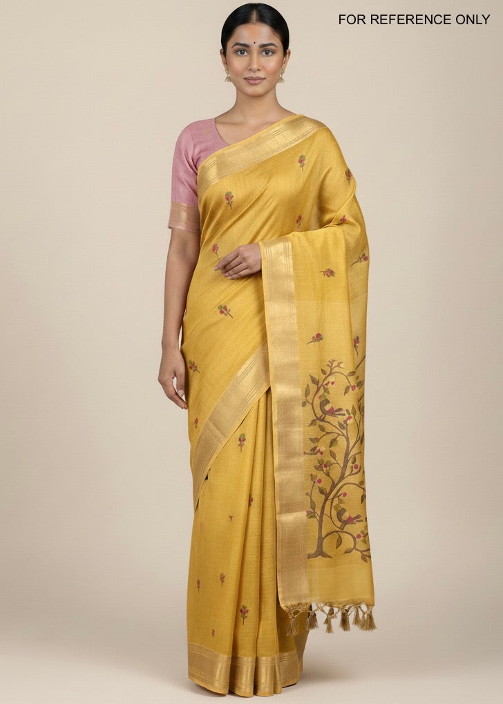 Cotton Semi-Silk Saree Cream Yellow Colour - [Code 896]