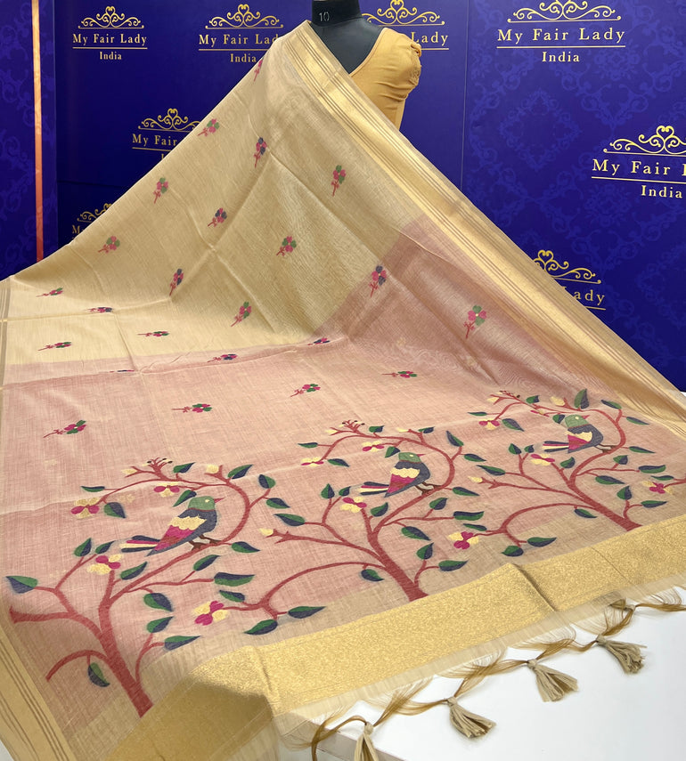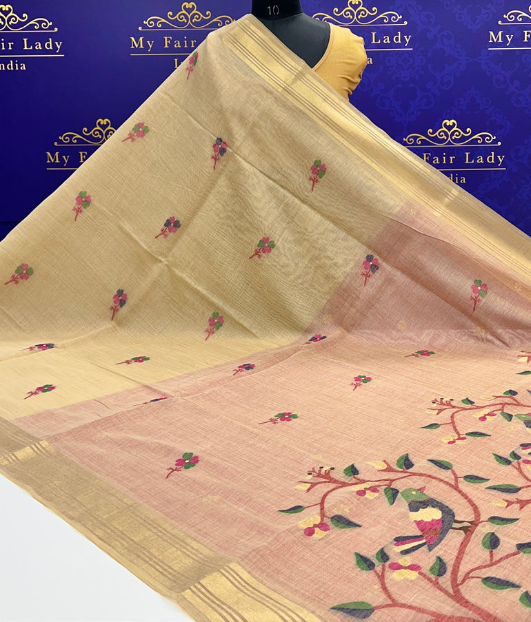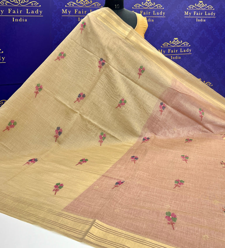Cotton Semi-Silk Saree Cream Colour - [Code 896]