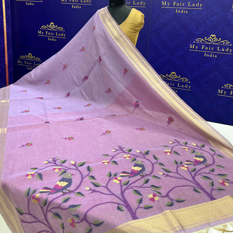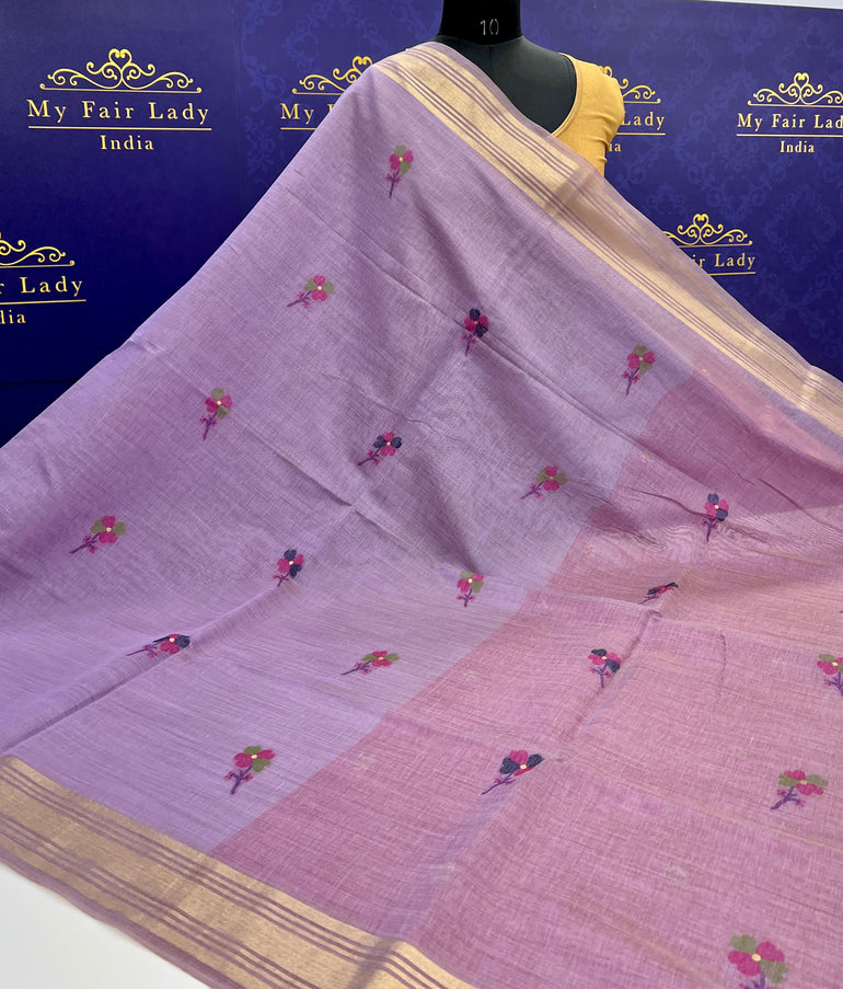 Cotton Semi-Silk Saree Purple Colour - [Code 896]