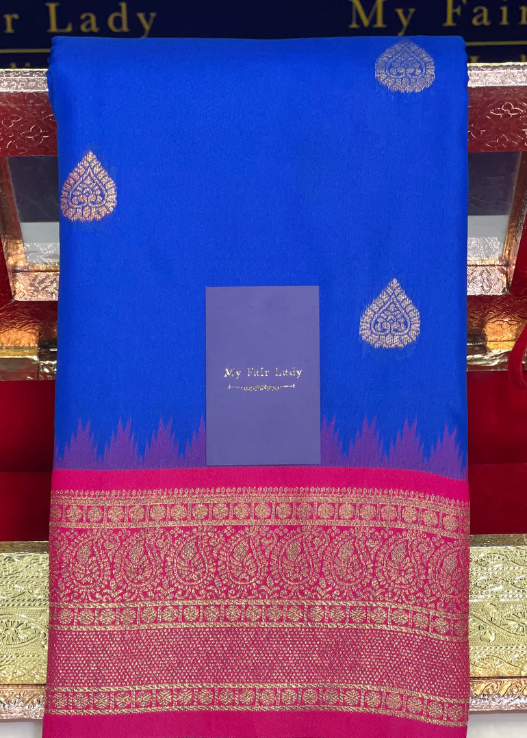 Butta Semi-Silk Saree Royal Blue Colour - [Code 1033]