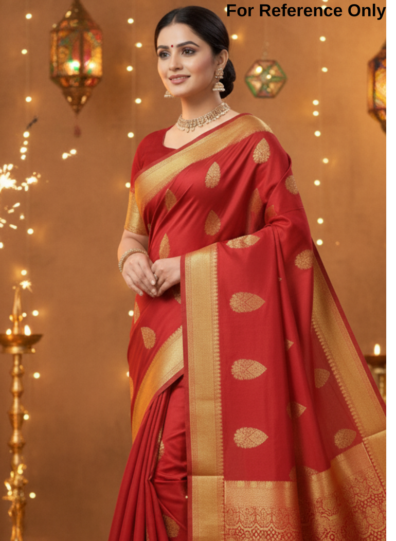 Premium Butta Semi-Silk Saree Deep Red Colour - [Code 704]