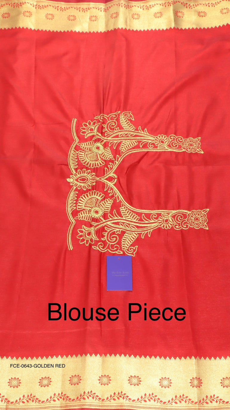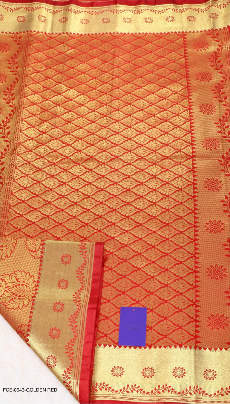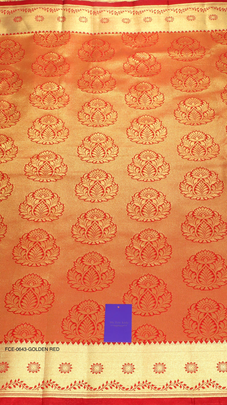 Semi-Silk Brocade Saree Golden Red Colour - [Code 643]