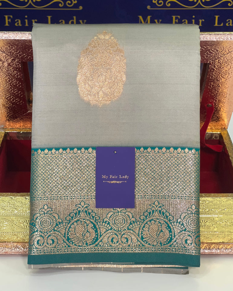 Butta Semi-Silk Saree Grey Colour - [Code 1038]