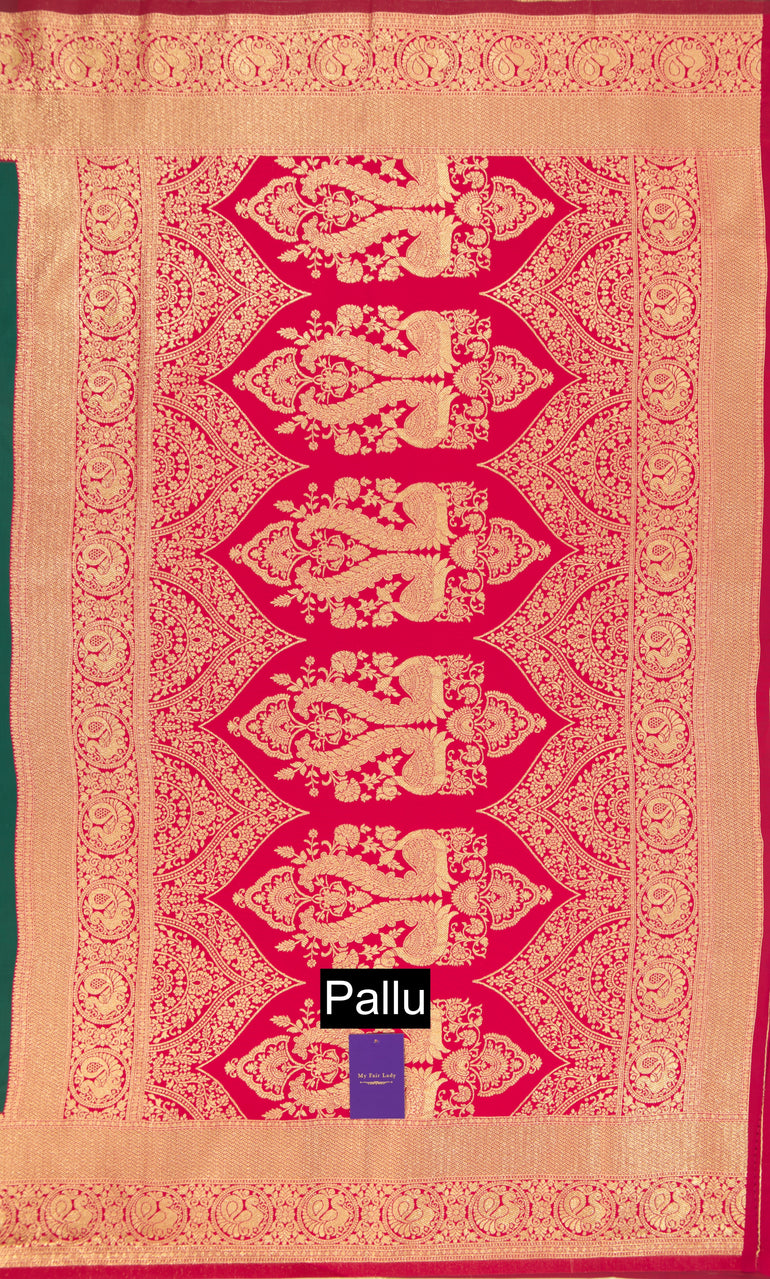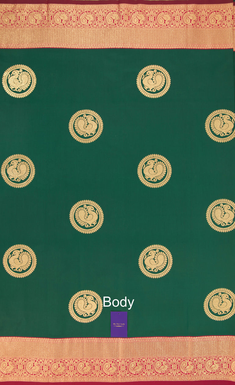 Butta Semi-Silk Saree Dark Green Colour - [Code 1039]