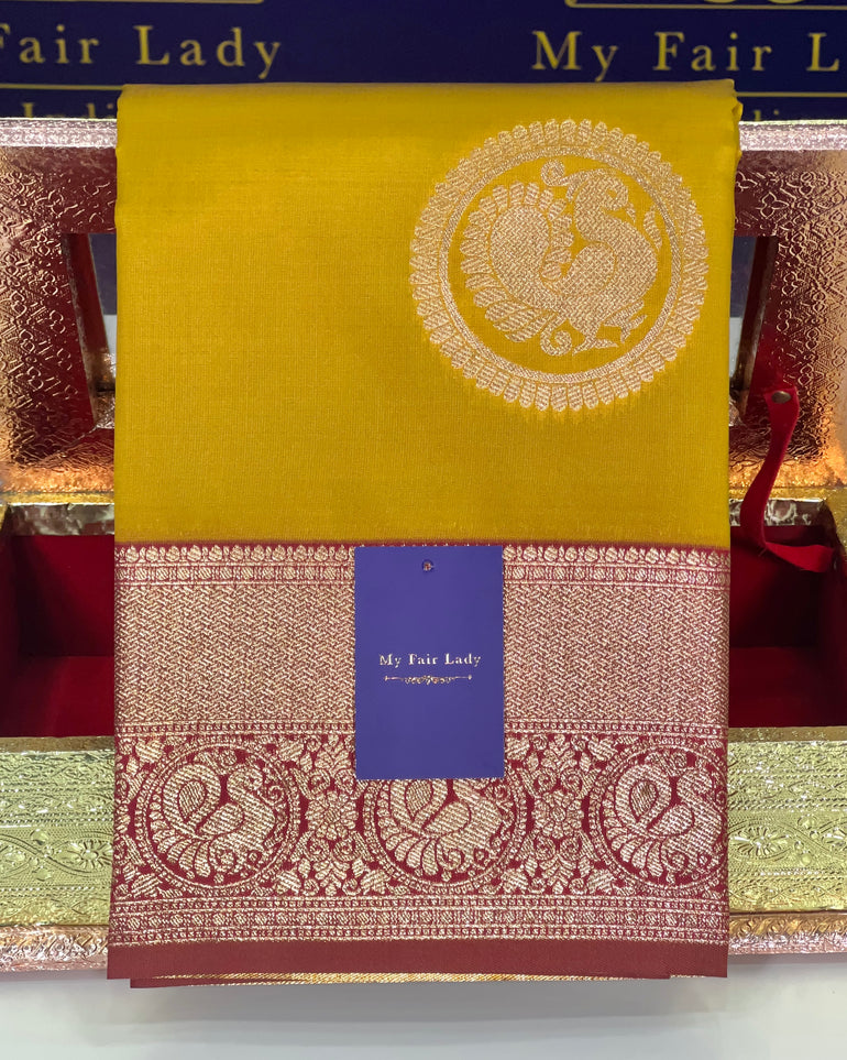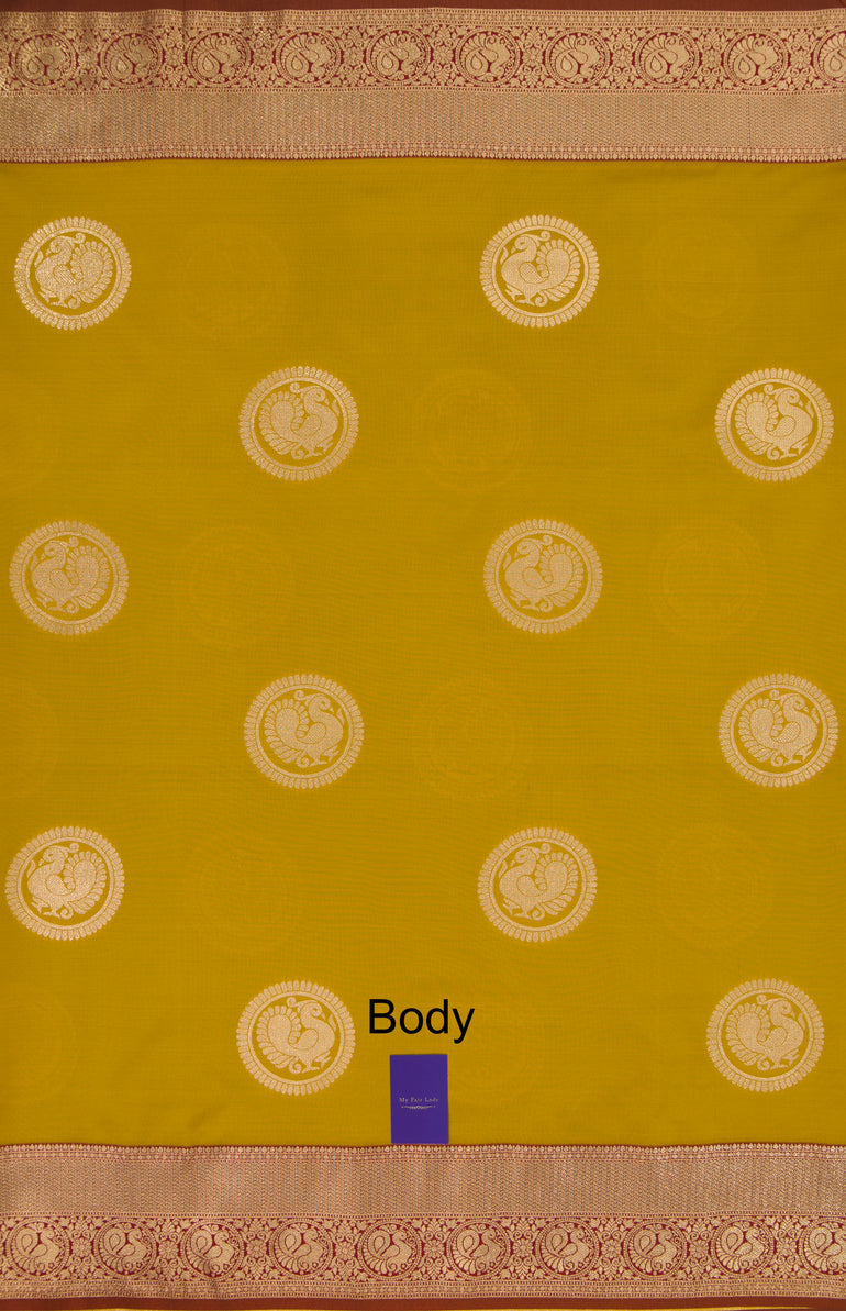 Butta Semi-Silk Saree Yellow Ochre Colour - [Code 1039]