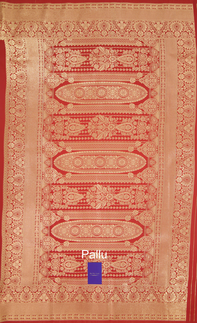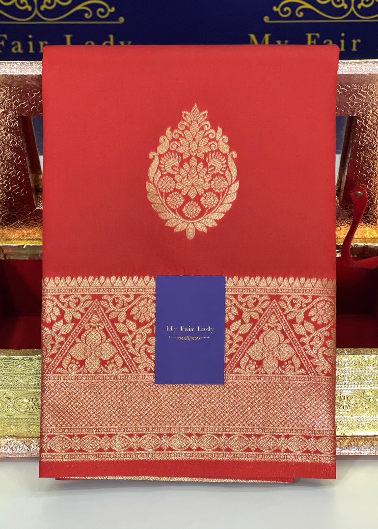 Butta Semi-Silk Saree Red Colour - [Code 1040]